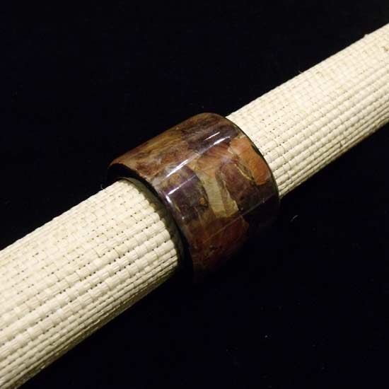 The featured napkin ring is in a luxurious style. If boasts a wide band with a slim body. The concrete natural color offers an antique touch.