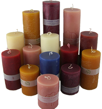 We offer many styles of candles from these Pillar Candles in the picture to Tea-light Candles all coming in many colors and can be scented or non-scented.