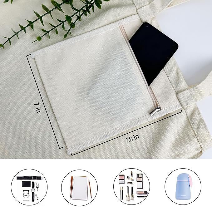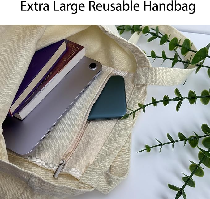 【MATERIAL】: The product is made of high quality cotton canvas, Soft and comfortable material. And this bag has neat overlocking and durable handles. Suitable size, convenient for both hand holding and shoulder toting.