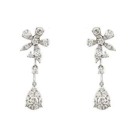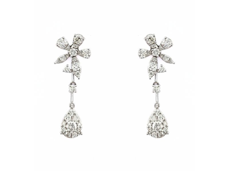 Natural Diamond Drop earrings featuring a flower and pear shape set in 18k white gold.