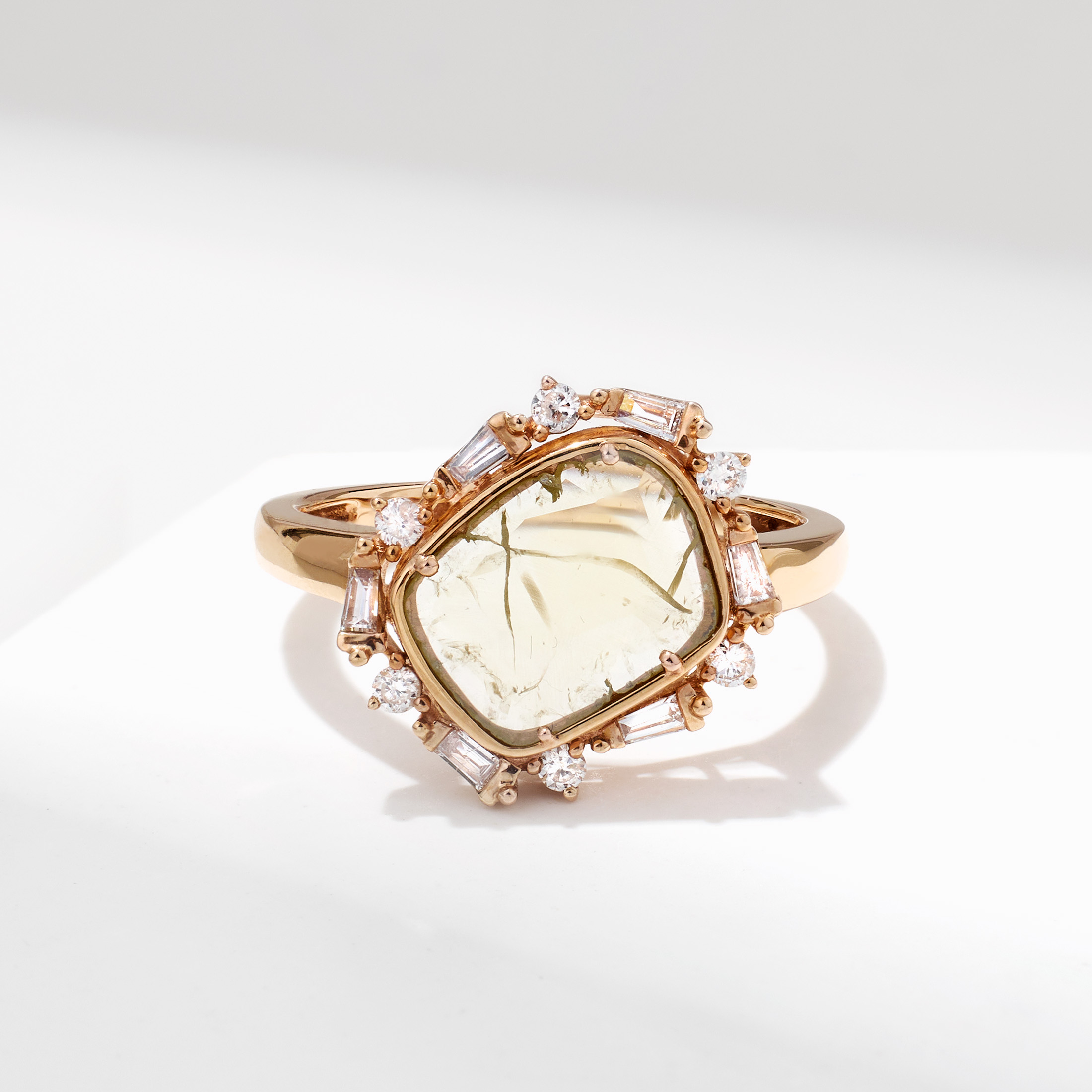 Our Diamond Slice collection features unique, edgy, and quirky diamond Slice, offering a fresh alternative to traditional diamond jewelry. Cut to a thickness of about 1-2mm, each raw diamond slice is irregular in shape and has slight inclusions that highlight its natural beauty. Carefully chosen for their shape, color, and clarity, each diamond is hand-crafted into exquisite jewelry that celebrates the stone's natural state.