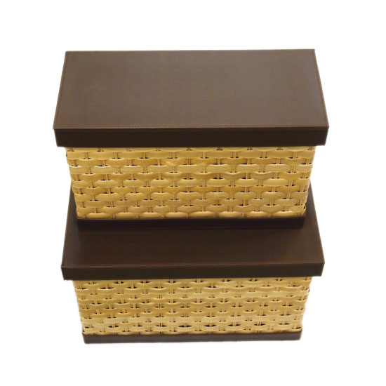 The natural fiber basket comes in a rectangular shape. It is covered by a solid-colored lid in brown. This basket is also completed with a practical capacity.