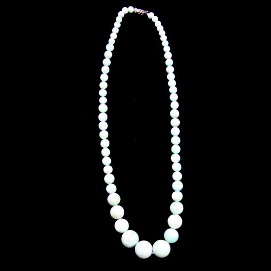 This ladies' necklace comprises of white round gemstones in different sizes. They are well polished to give a smooth and brilliant look. Brighten up your dress with this natural gemstone necklace.