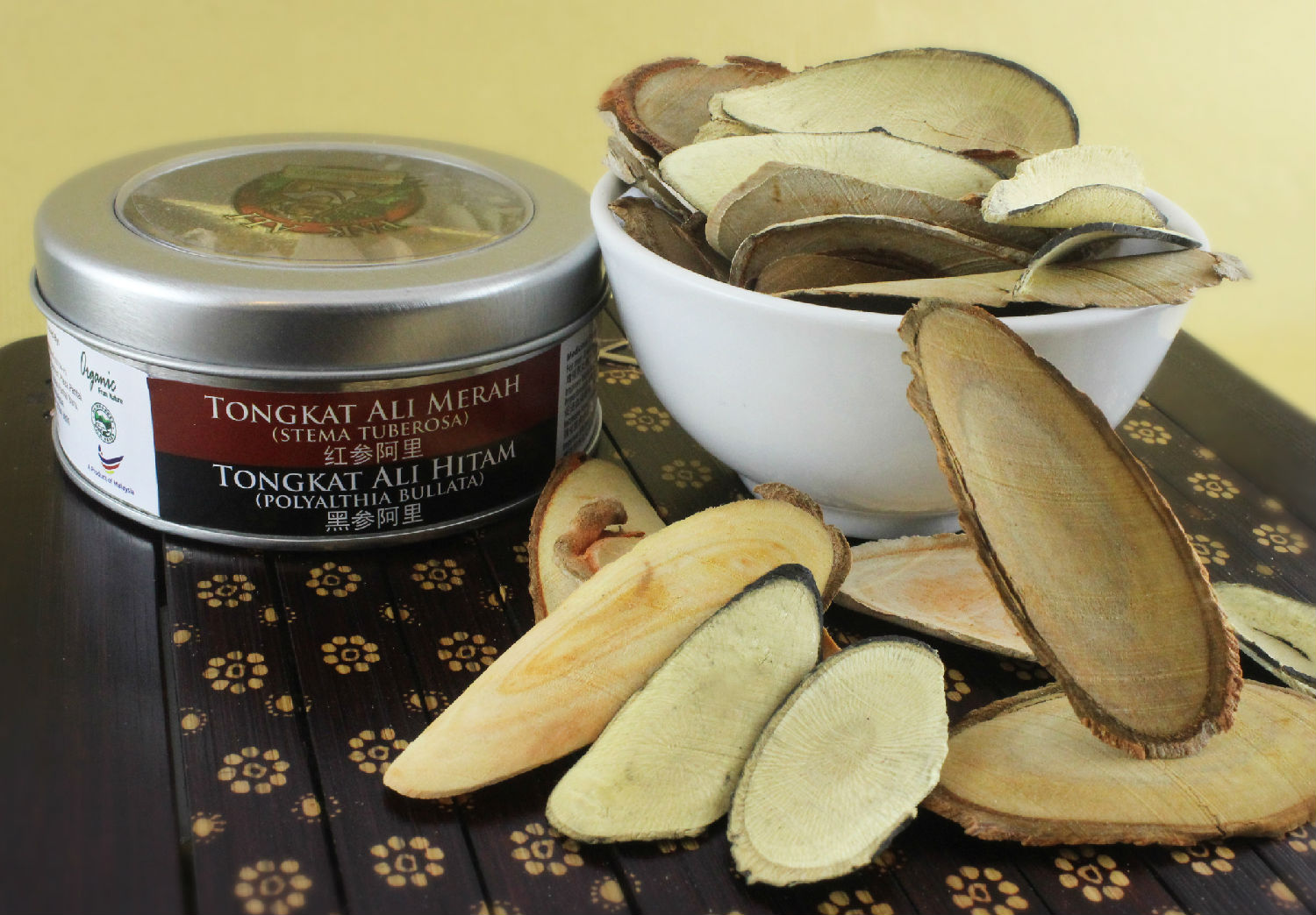 100% natural and organic Black Tongkat Ali (Polyalthia Bullata) and Red Tongkat Ali (Stema Tuberosa).