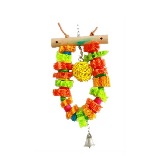 This is a bird toy made of natural loofah that is healthy, non-toxic and easy to clean. The loofah bird toy is suitable for birds for controlling the length of their beaks, play and abreact exciting and anger for play. The natural vegetable fiber in the loofah can help birds' digestion.