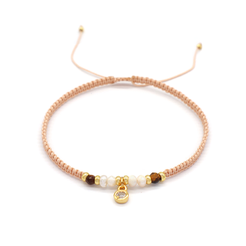 | Material | Fresh Water Pearl+ Natural Stone + Brass Beads + CZ Charm Fresh Water Pearl+ Natural Stone + 925 Sterling Silver Beads + CZ Charm |