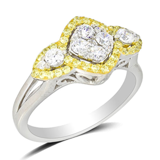 This stunning ring combines the sparkles of white and yellow diamonds for a wondrous effect. The white gold finish further enhances its charm. The extraordinary brilliance and exquisite design can fully grace your finger.