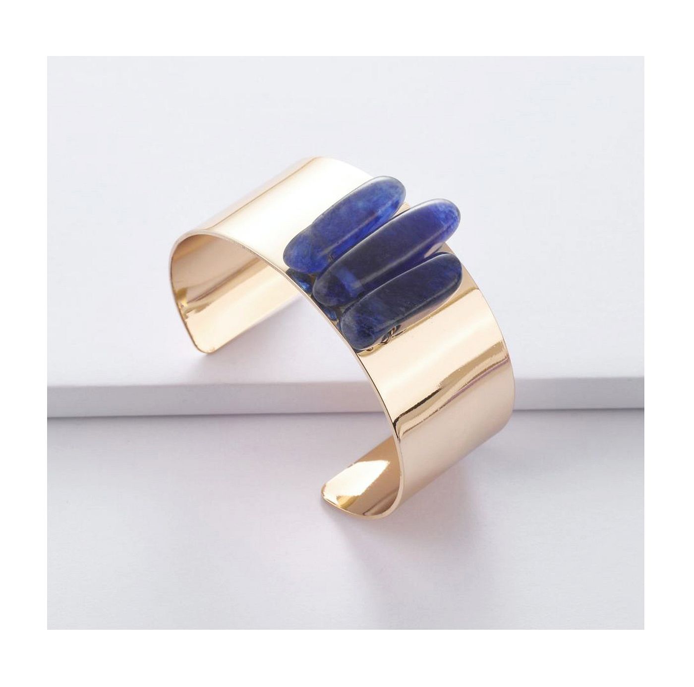As shown is a high-fashion nature stone style golden plated bangle with alloy materials.