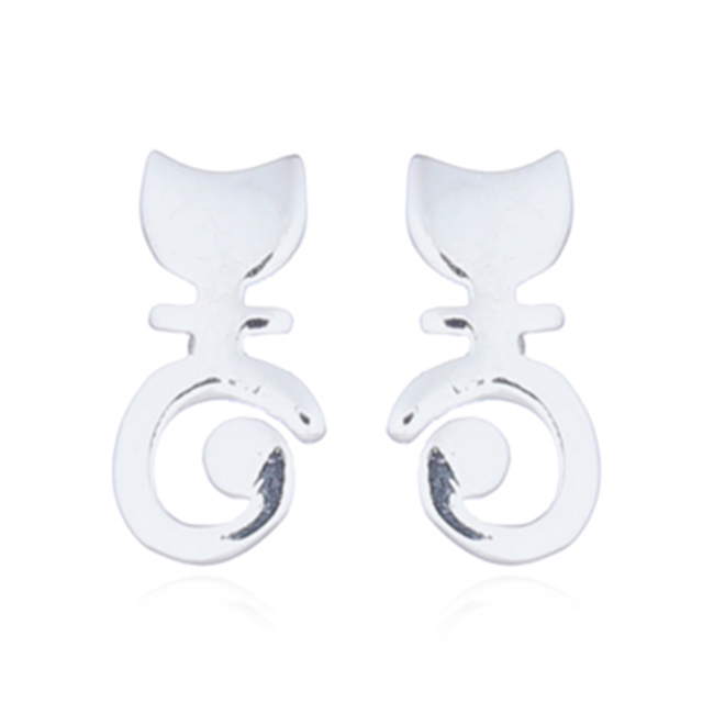 Naughty Kitty's Tail Down Silver Plated Stud Earrings