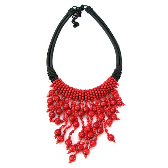 Features here is a necklace in bamboo dyed colour. The necklace has an initiate design. It features decorated bean for size frame. The necklace has various round bamboo dyed beads. It is a very eye-catching piece to have.