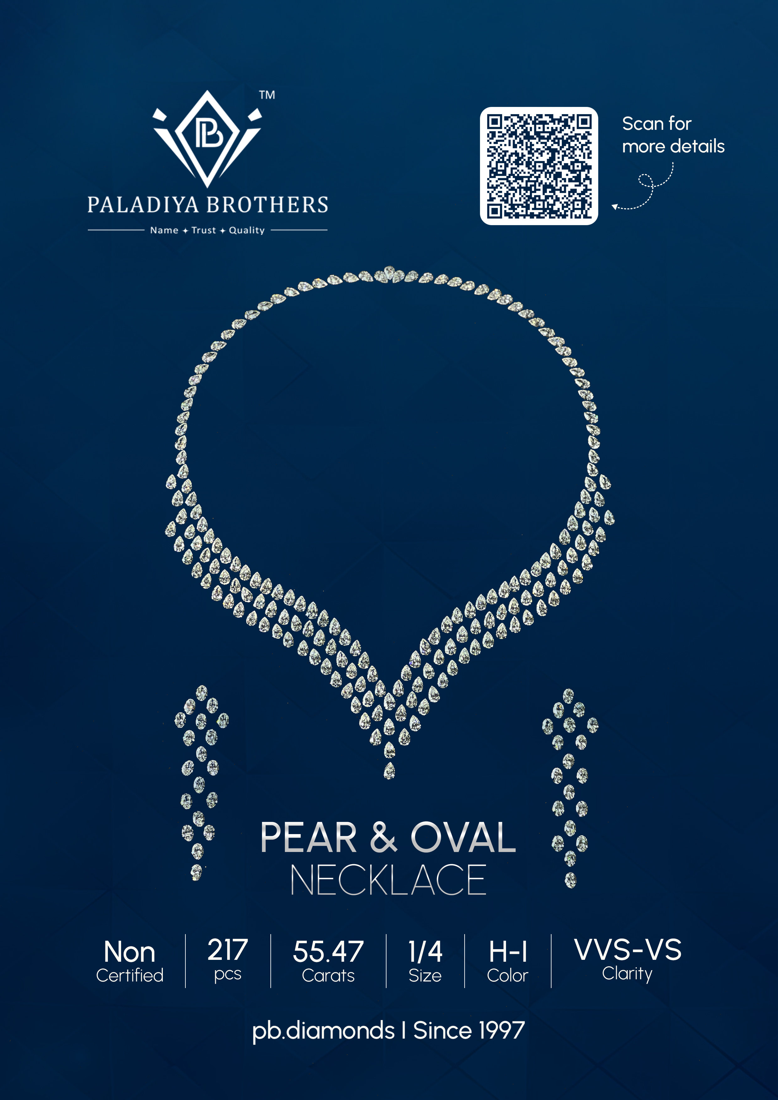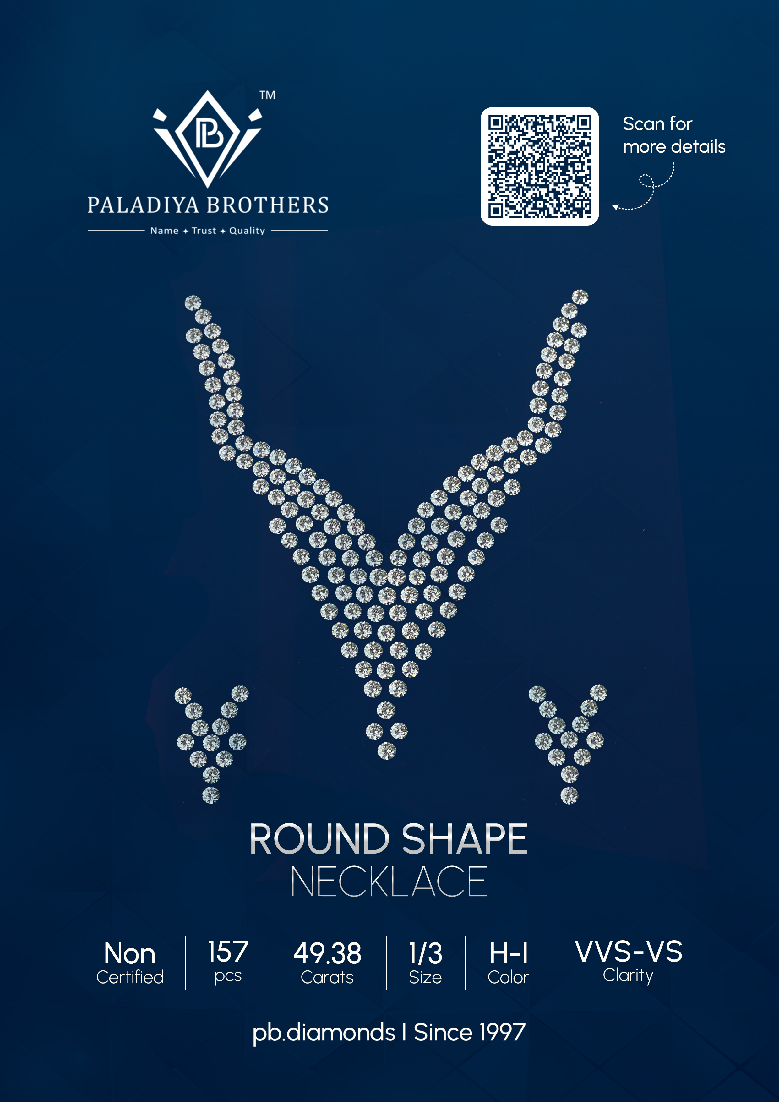 At Paladiya Brothers, our Diamond Necklaces, Bracelets, and Earrings are a celebration of natural brilliance, refined artistry, and uncompromising craftsmanship. With decades of expertise in natural diamond manufacturing, we meticulously select and precision-match each stone to ensure exceptional fire, scintillation, and symmetry across every creation. Our necklaces are designed to gracefully frame the neckline with perfectly aligned diamonds that radiate sophistication and timeless charm. From classic silhouettes to contemporary high-jewelry statements, each piece reflects balance, proportion, and flawless finishing. Our diamond bracelets are crafted to offer seamless flexibility, superior comfort, and consistent brilliance, whether styled as an everyday luxury essential or an elegant statement piece. Every link, setting, and clasp is engineered with precision to maintain durability while enhancing light performance. Our earrings, ranging from refined studs to elaborate drop designs, are created to maximize sparkle and elevate natural beauty with effortless elegance. Each pair is carefully calibrated for symmetry and matched brilliance, ensuring harmony in design and exceptional visual impact. At Paladiya Brothers, quality control is at the heart of our process — from rough selection to final polish — allowing us to deliver jewelry that embodies purity, precision, and enduring value. We work exclusively with natural diamonds, maintaining strict standards in cut, clarity, color, and finish to meet the expectations of global luxury markets. Whether for bridal collections, fine jewelry showcases, or bespoke creations, our pieces represent a seamless blend of tradition and innovation. Every necklace, bracelet, and earring we craft is more than an accessory; it is a statement of legacy, trust, and excellence built over generations. Designed to shine today and be cherished for years to come, our diamond jewelry reflects the brilliance of nature perfected by human mastery.