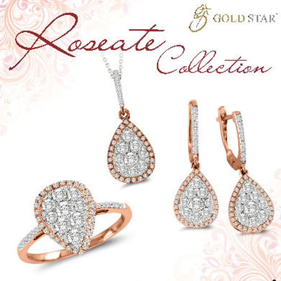 This exquisite rose gold collection of a necklace, a ring and a pair of earrings shines with impeccable glamour. It perfectly represents the fine art of gold. Studded with brilliant diamonds, this jewelry set can attract every segment of the market.