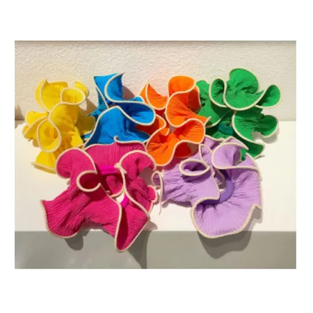 As shown is a high-fashion neon color polyester material for lady hair scrunchy.