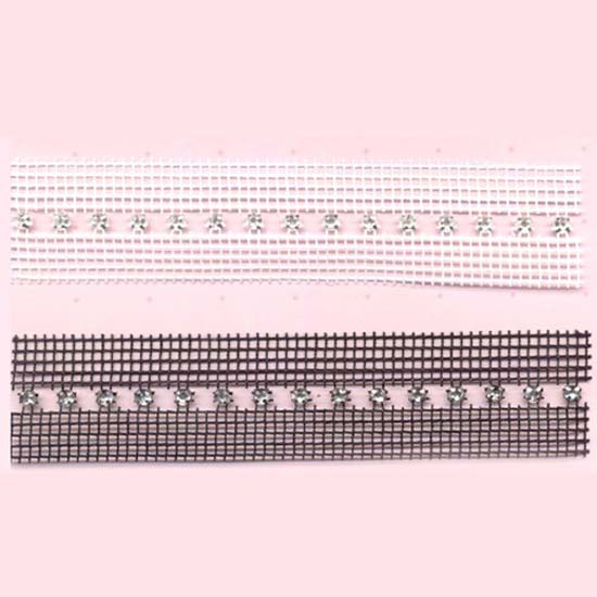 This garment tape features a feminine net design, whilst the closure is emblazoned with lustrous stones to feast your eyes. The mesh structure is woven with details in mind to promise great endurance. This attractive net tape is ideal for enclosing ladies' tank tops, dresses and more.