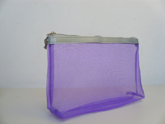 • Netting with satin trim cosmetic bag.