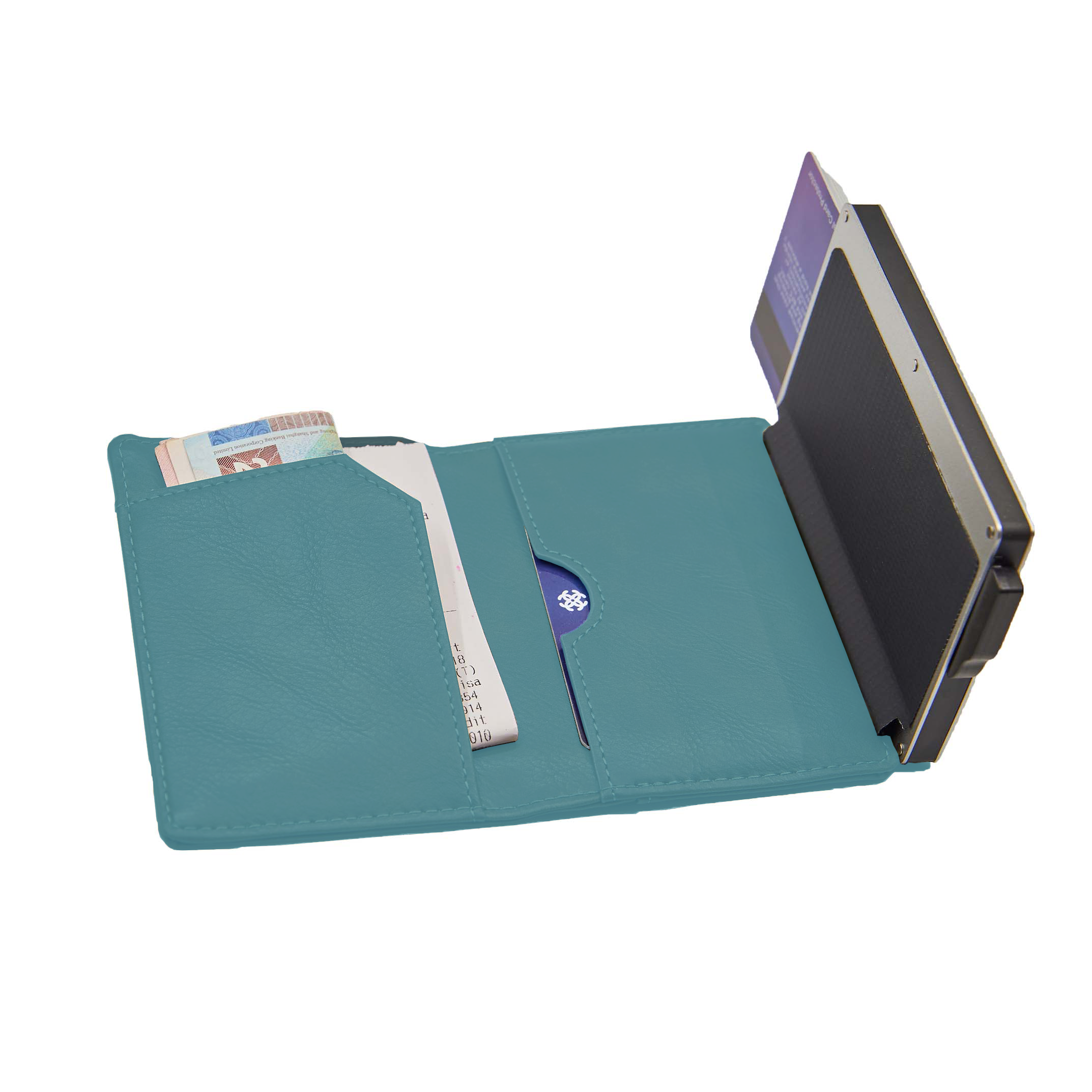 3) Card protector can hold 4 embossed cards or 6 flat cards.