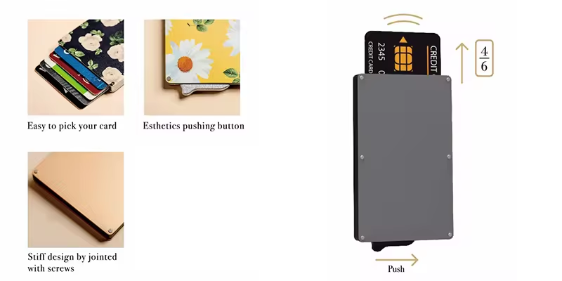 C. Easy to take and use, you can get the cards easier than normal card holder/wallet, push the button and the card will pop up.