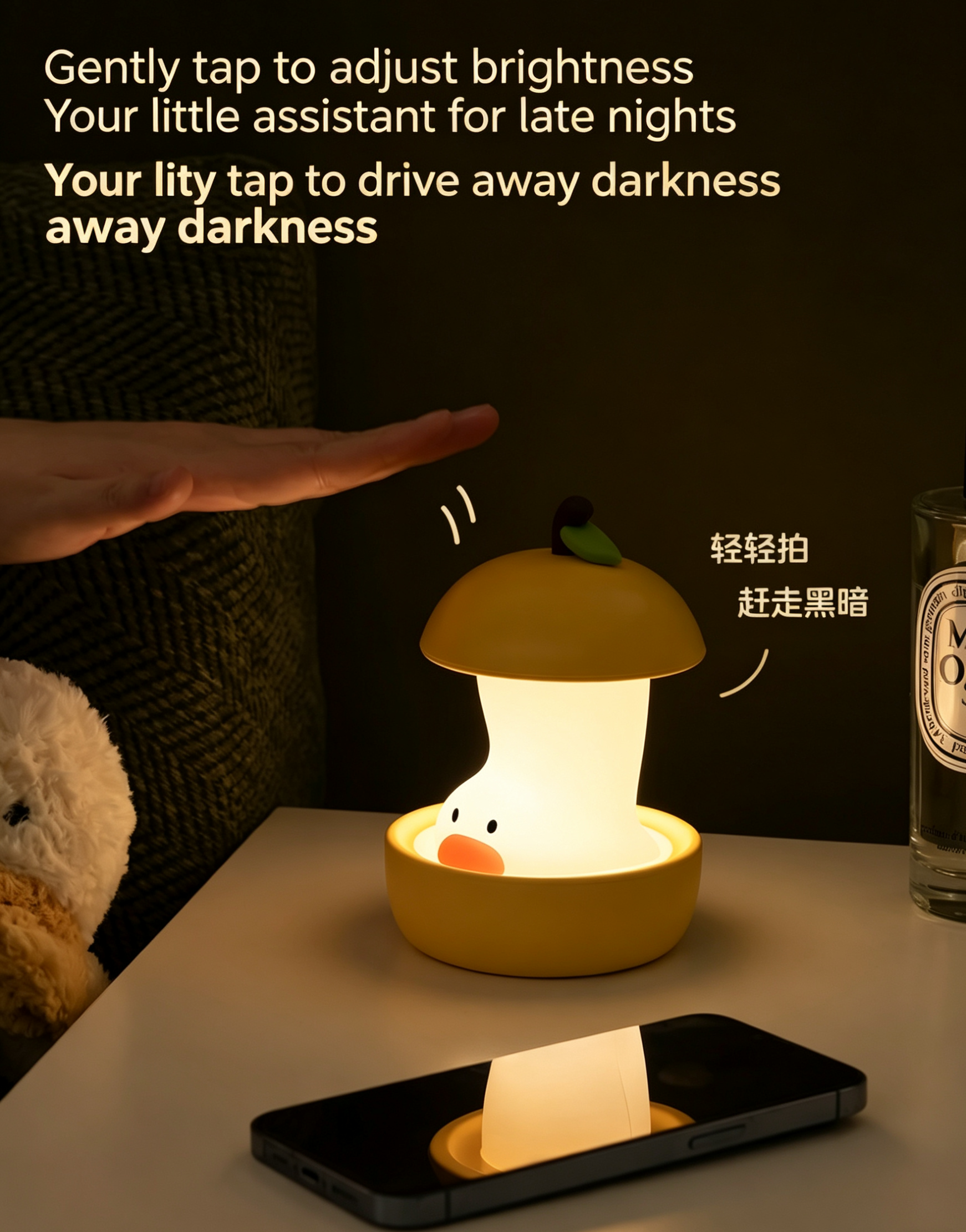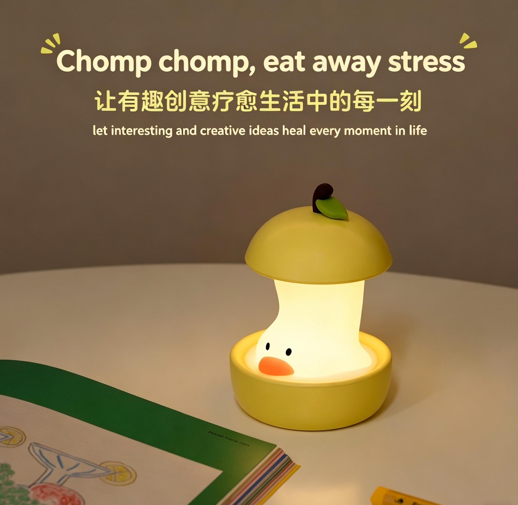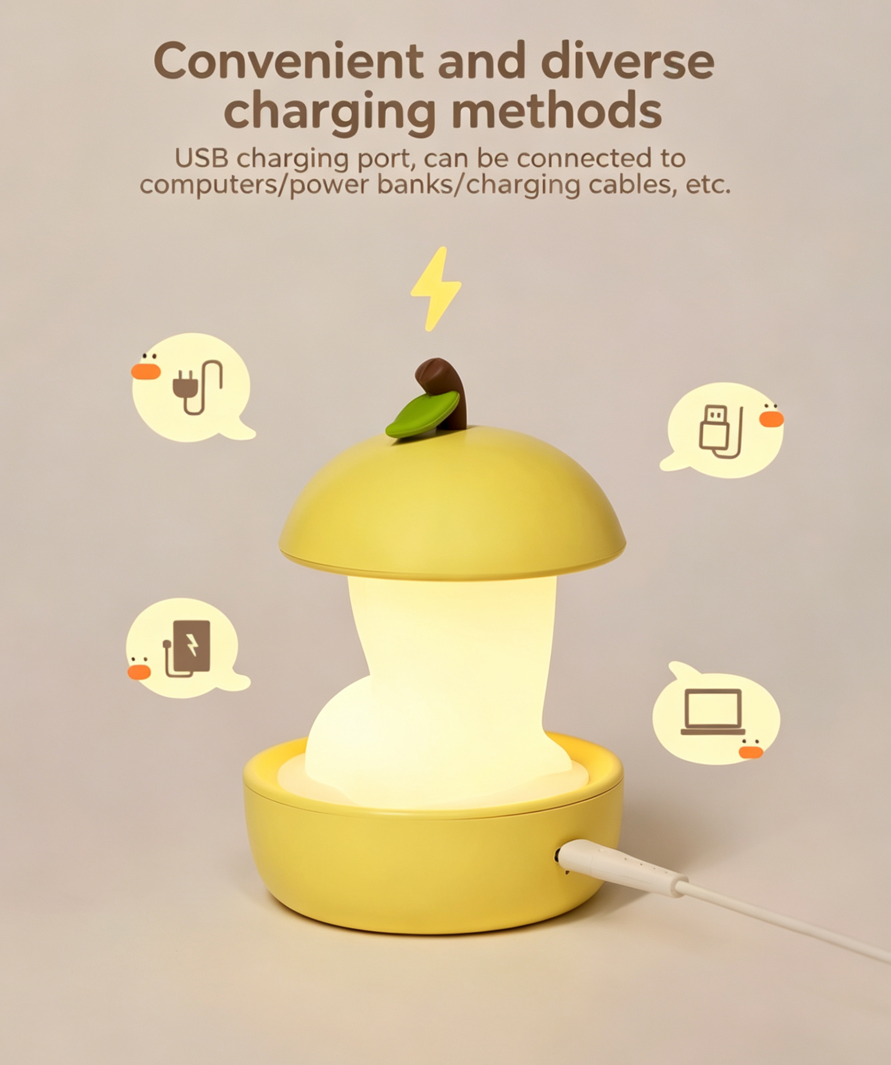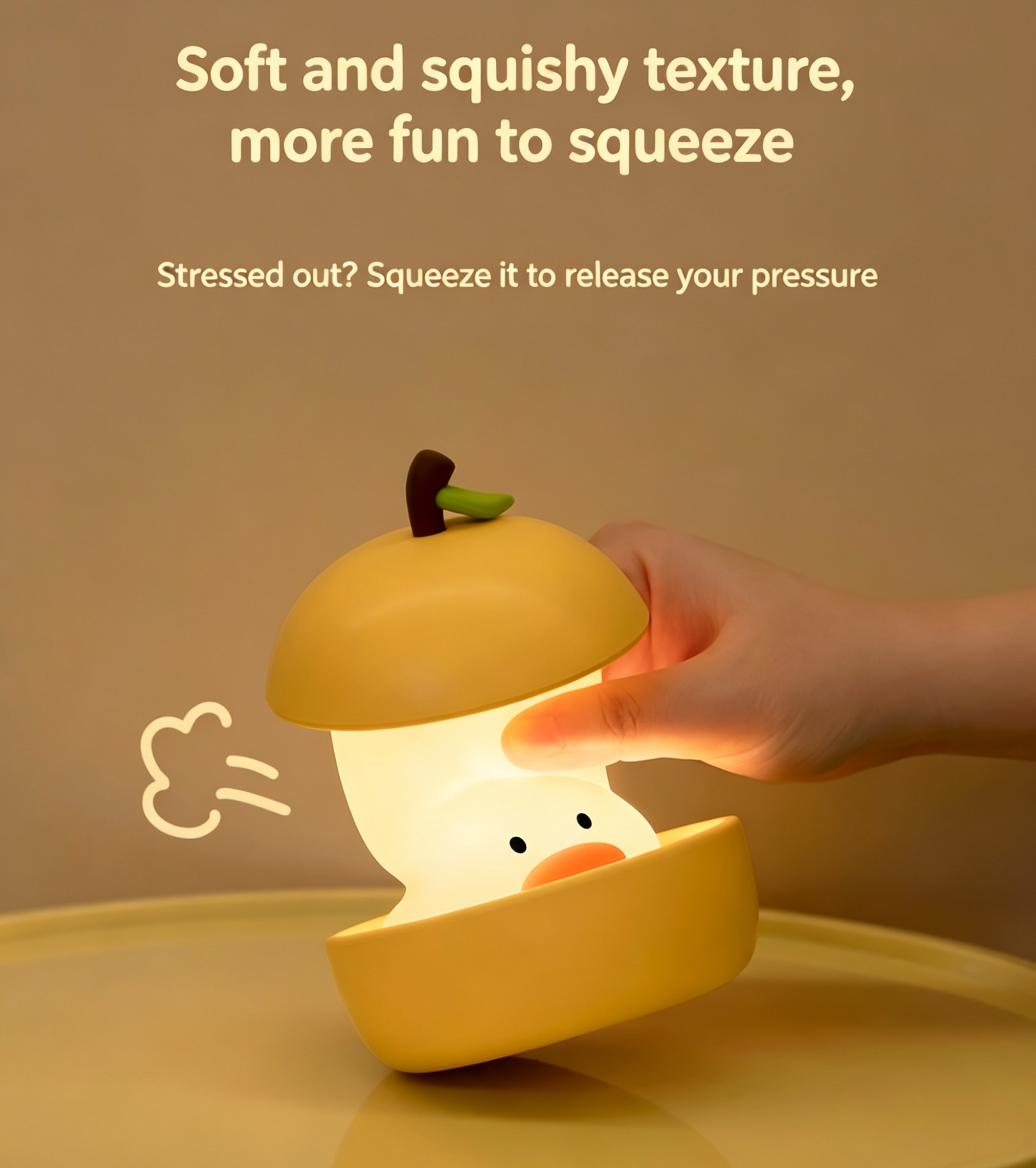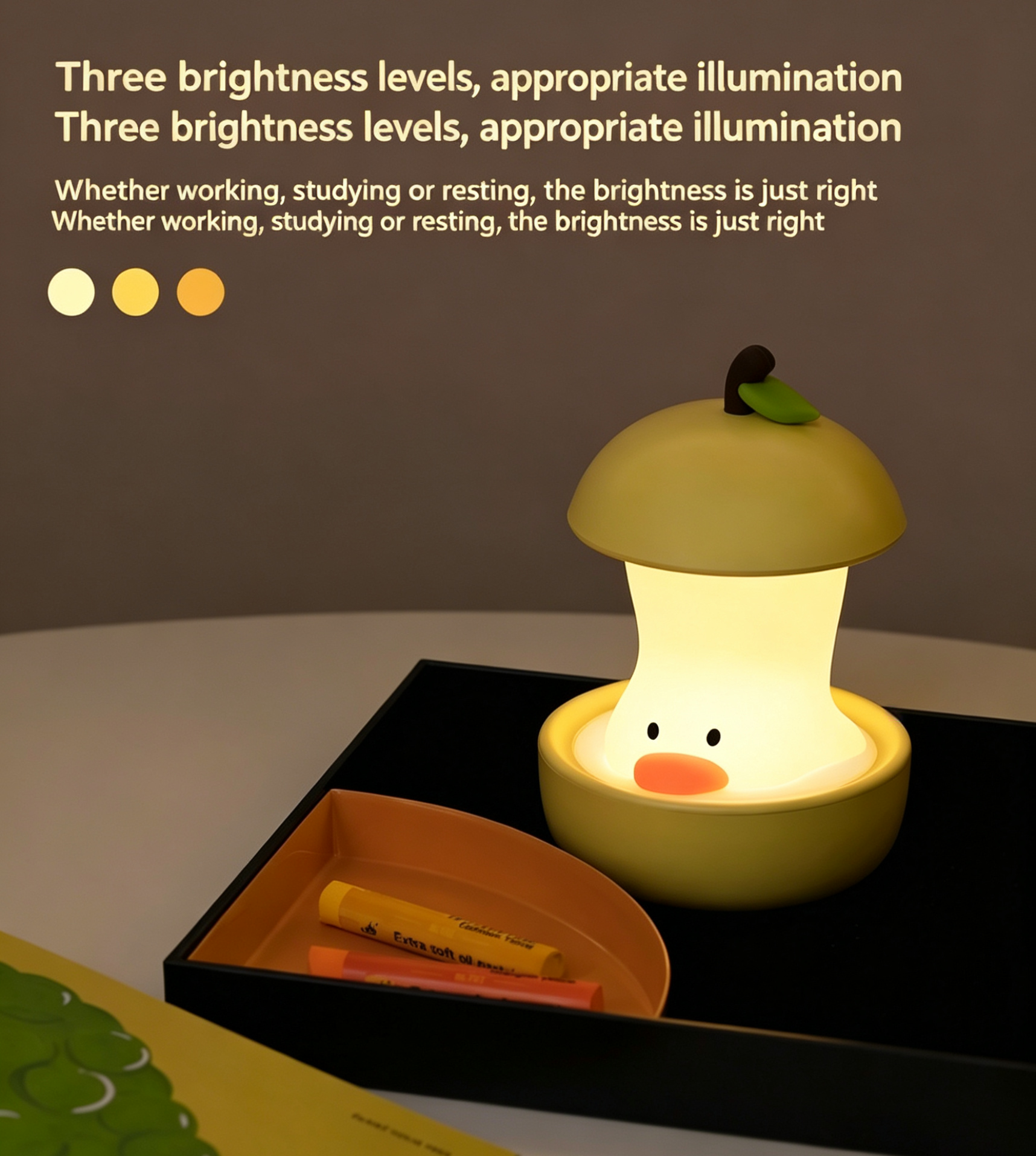New Arrival Duck Pear Night Light, USB Rechargeable, 3-Level Dimmable Bedside Lamp, Cute & Adorable Companion Light