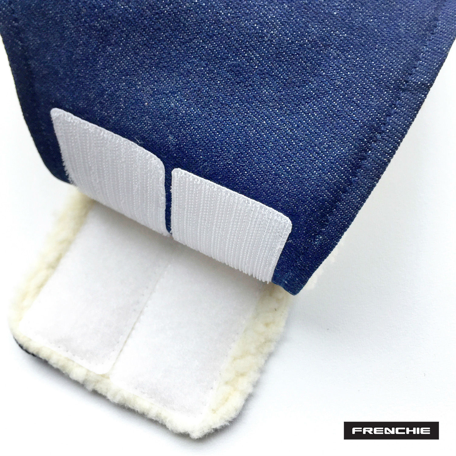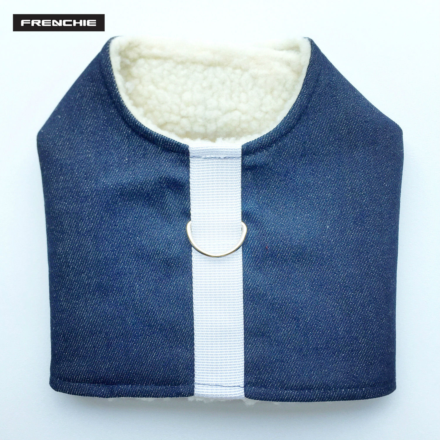 We use100% cotton pre-wash denim for the Harness Coat shells. All coats have sherpa linings and with the easy on and off hook and loop closure, your canine is ready to go in split second.