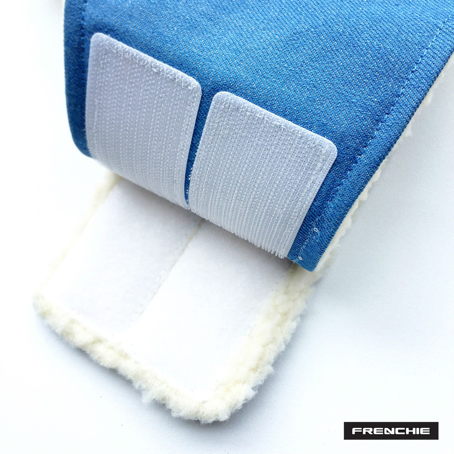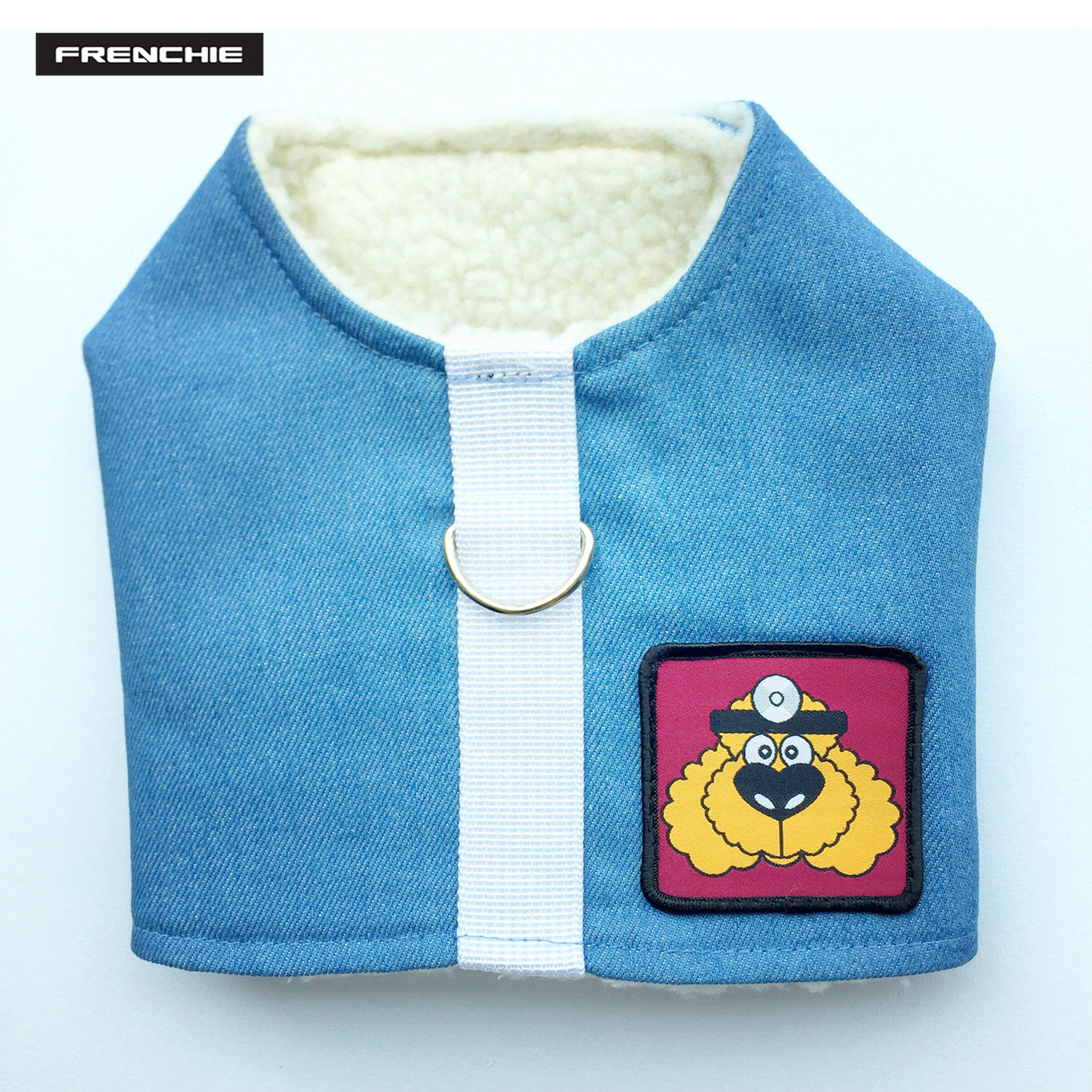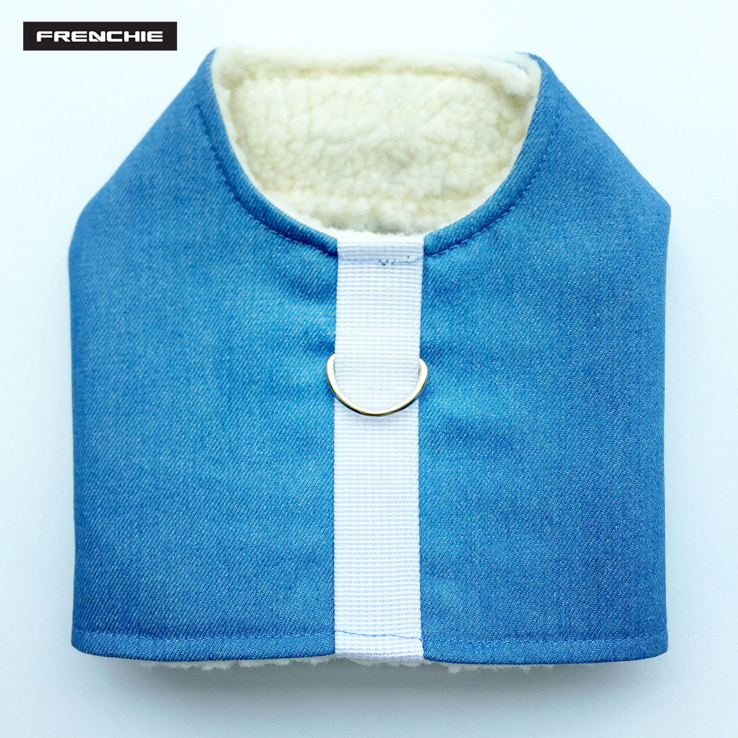 We use100% cotton pre-wash denim for the Harness Coat shells. All coats have sherpa linings and with the easy on and off hook and loop closure, your canine is ready to go in split second.