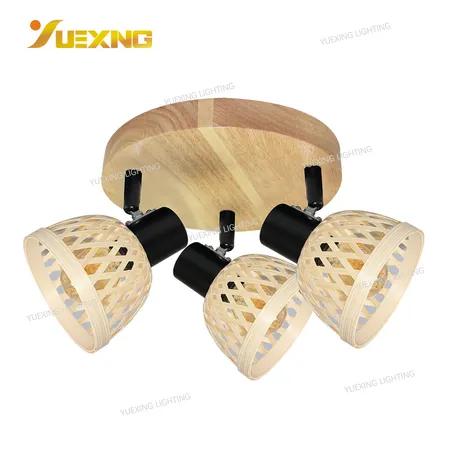 New Customized Versatile Multi-Angle Metal Spot Hanging Light Black Base LED Spotlight Spotlight with Eco Bamboo Shade