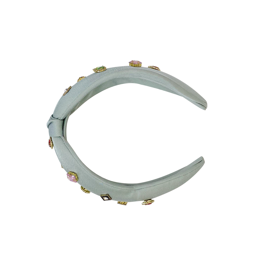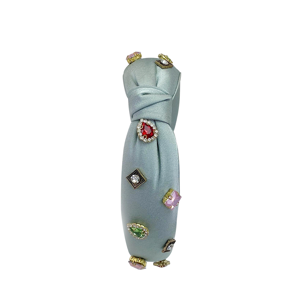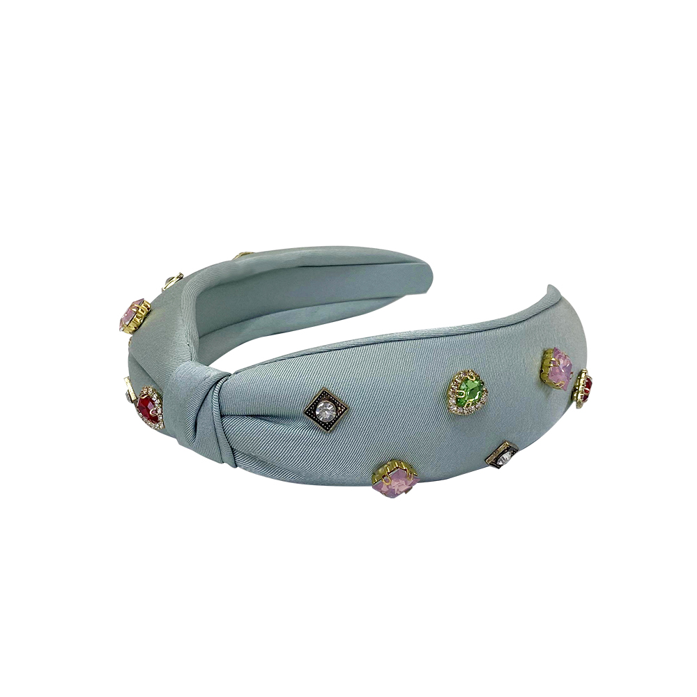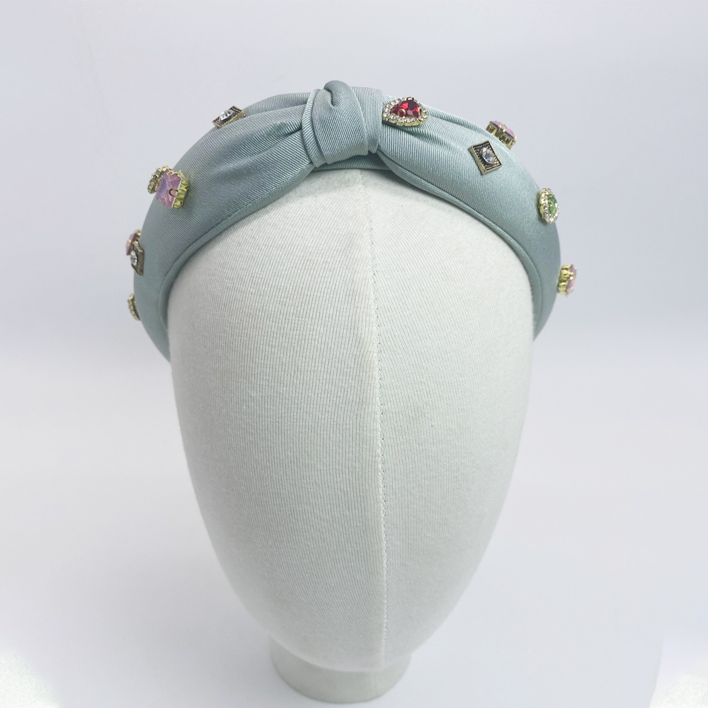 New Design Fashion Girl Headband Handmade Rhinestone Polyester Hairband Women's Middle Knot Turban Hair Accessories