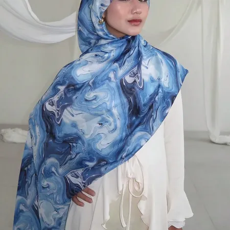 New Design Hot Printed Watercolor Hijabs Muslim Premium Water Print ELegant Women Headscarf Hijab, Soft Material Multifunctional Sunscreen/Windproof Headscarf Shawl, Suitable For Daily Life/Holiday Parties/Banquet Occasions Abaya Accessories