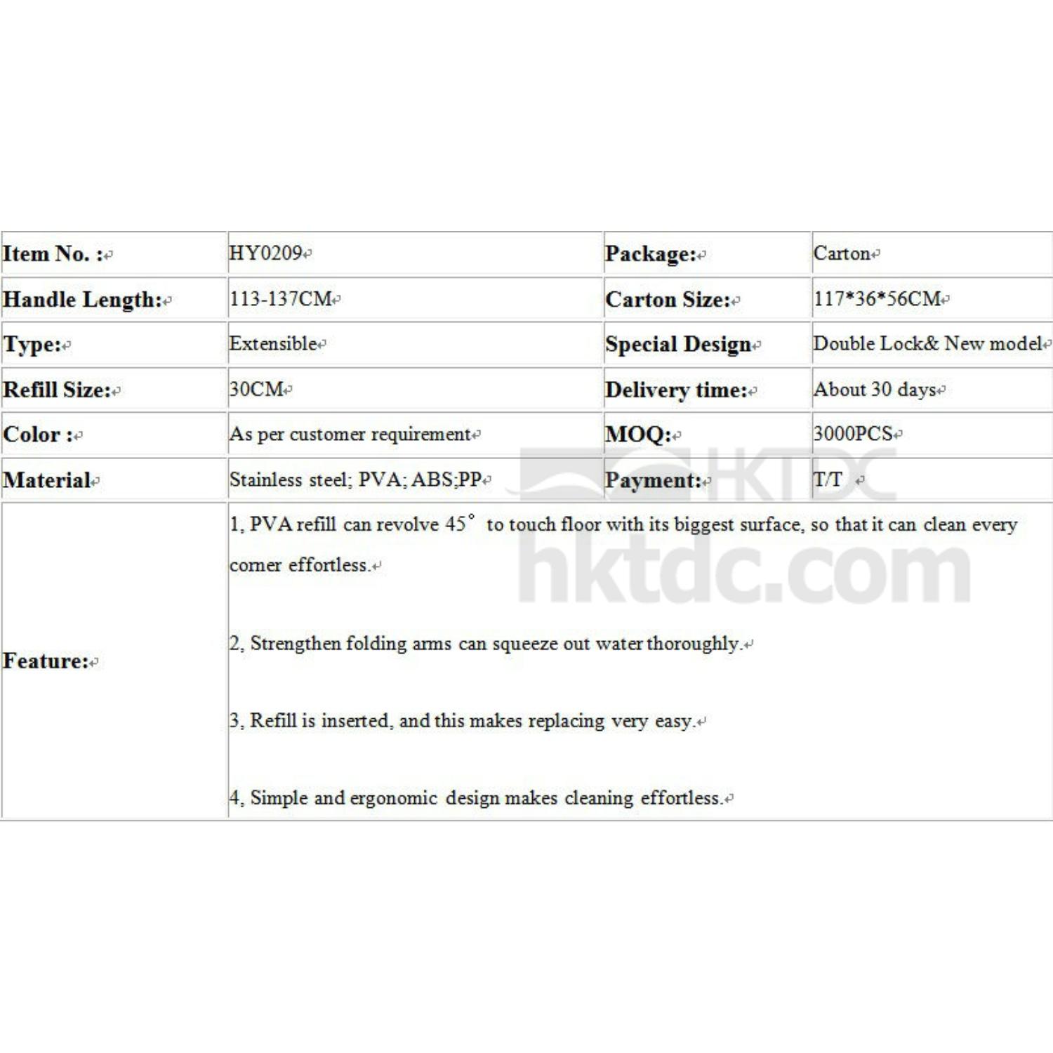 we can do stainless steel and iron handle, 20PCS in one carton box, PVA mop is easy to replaced.