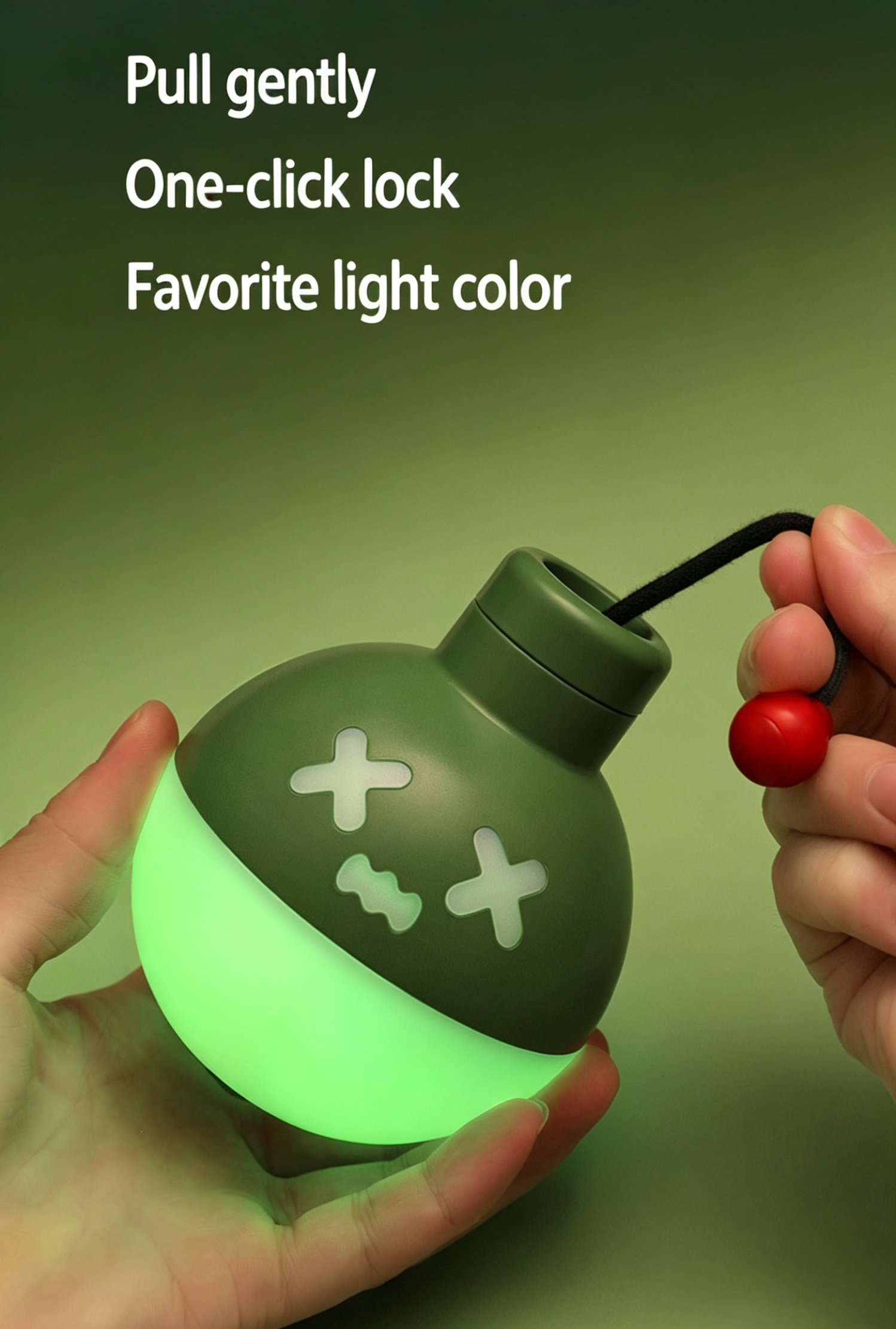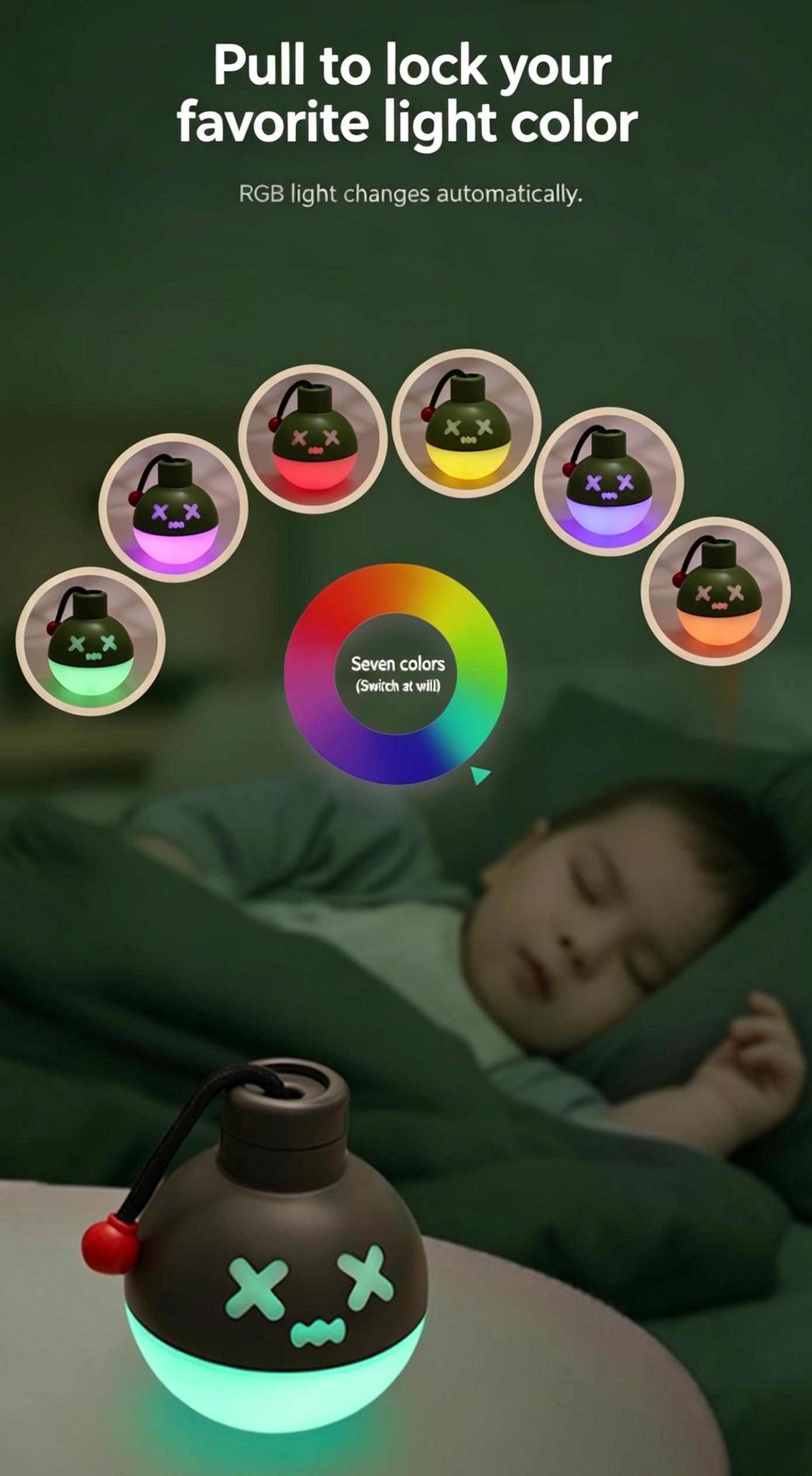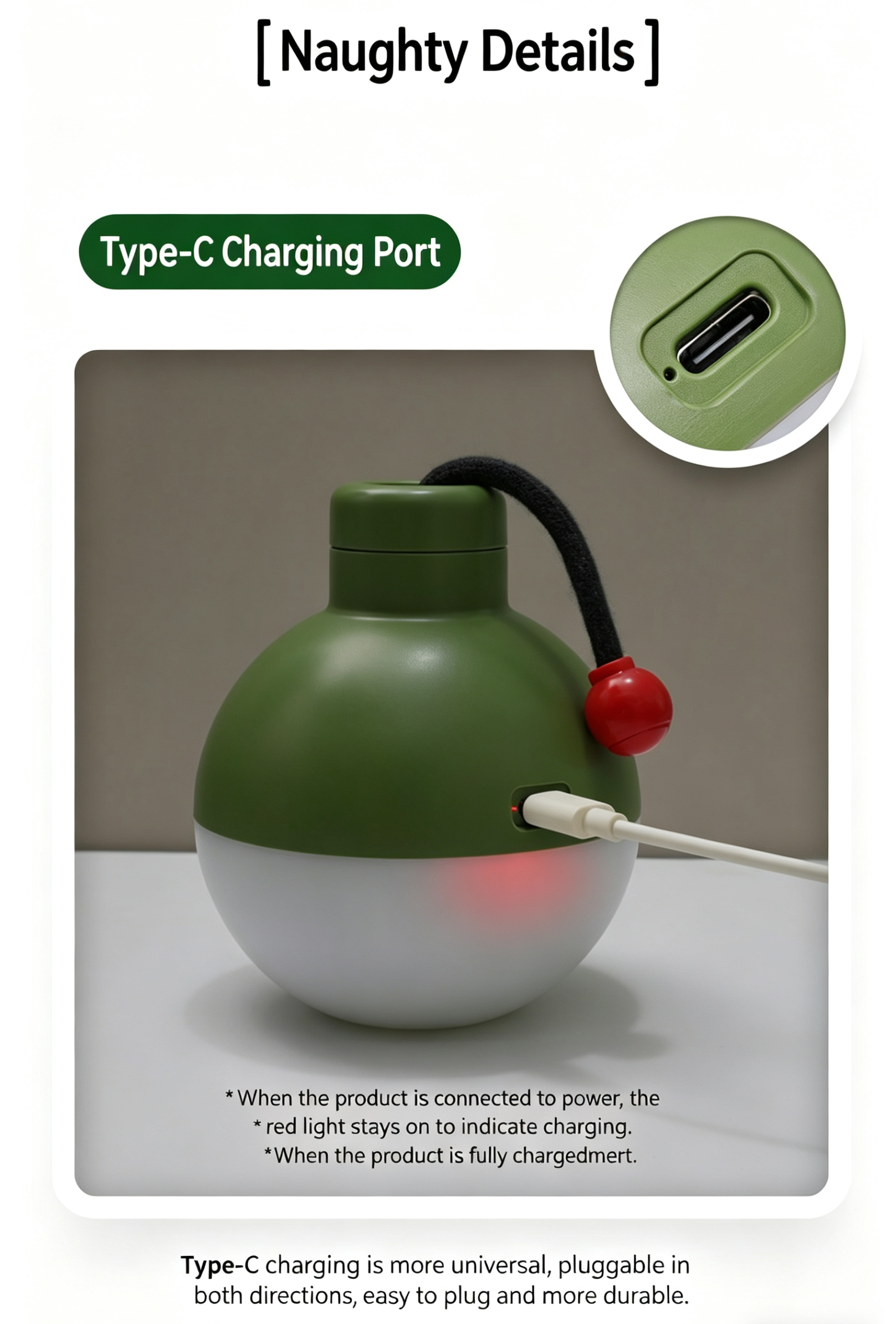 Meet our Naughty Fun Night Light, a creative and playful lamp with a unique grenade design! Featuring a fun pull-cord control, it offers stepless dimmable warm light and 7 RGB color-changing modes, plus a 30-minute auto-off timer for worry-free sleep. With a 1200mAh long-lasting battery, Type-C charging, and a portable hanging design, it’s perfect for camping, bedrooms, desks, and as a viral novelty gift. Durable, eye-safe, and full of fun, it’s the ultimate creative decor for any space!