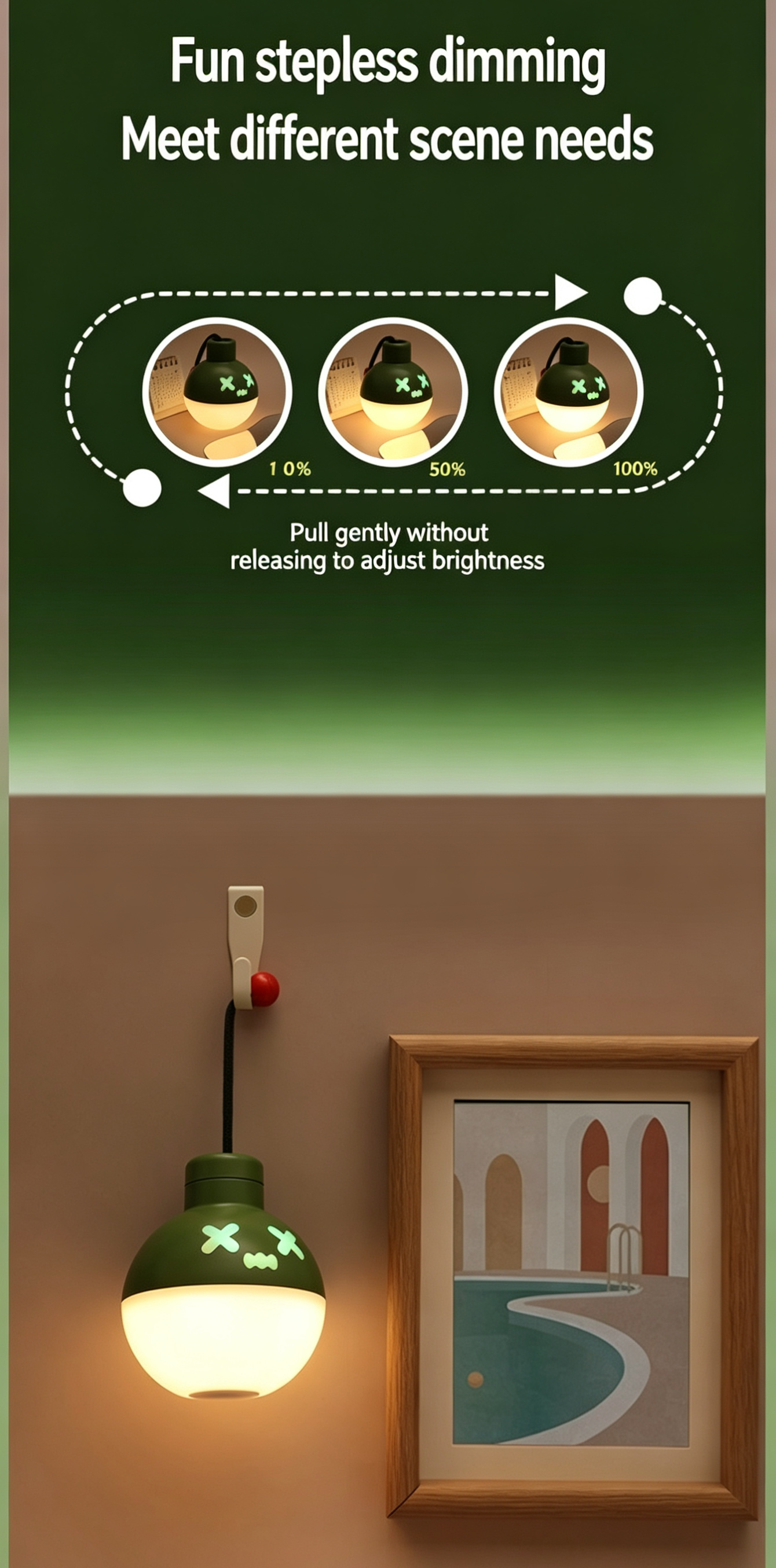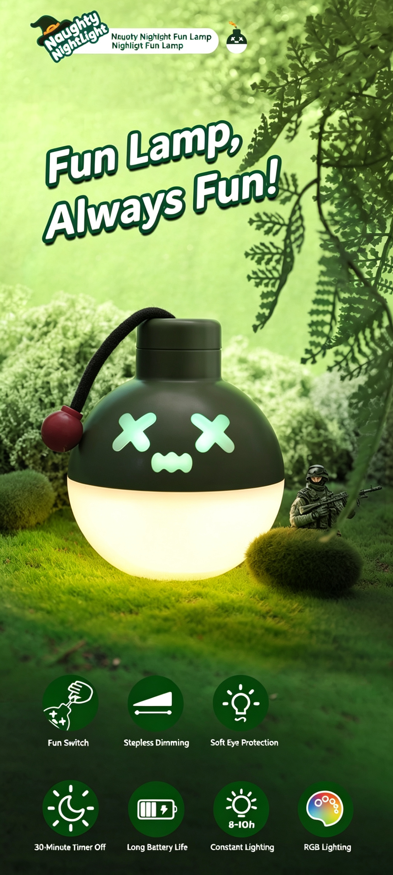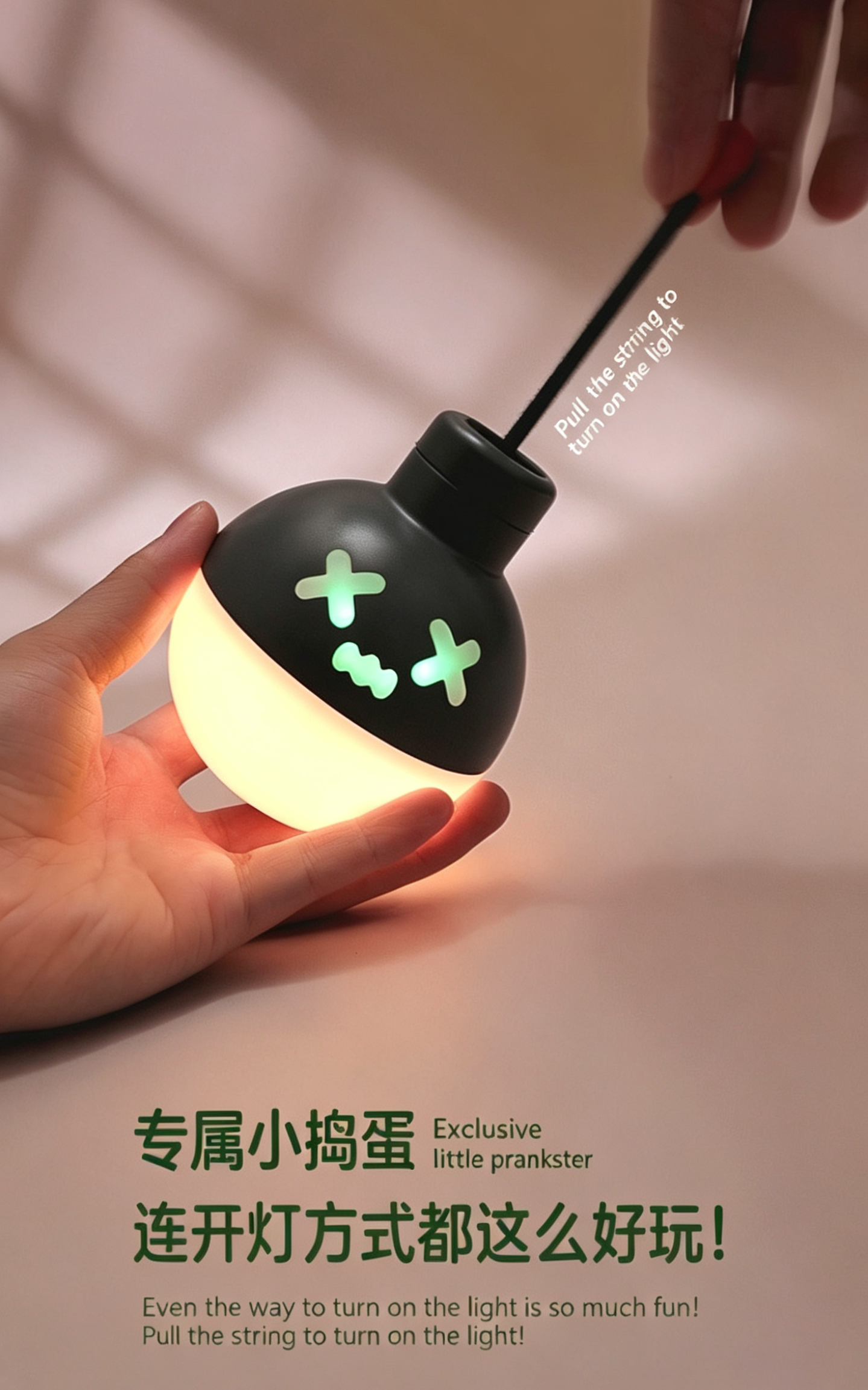 Meet our Naughty Fun Night Light, a creative and playful lamp with a unique grenade design! Featuring a fun pull-cord control, it offers stepless dimmable warm light and 7 RGB color-changing modes, plus a 30-minute auto-off timer for worry-free sleep. With a 1200mAh long-lasting battery, Type-C charging, and a portable hanging design, it’s perfect for camping, bedrooms, desks, and as a viral novelty gift. Durable, eye-safe, and full of fun, it’s the ultimate creative decor for any space!