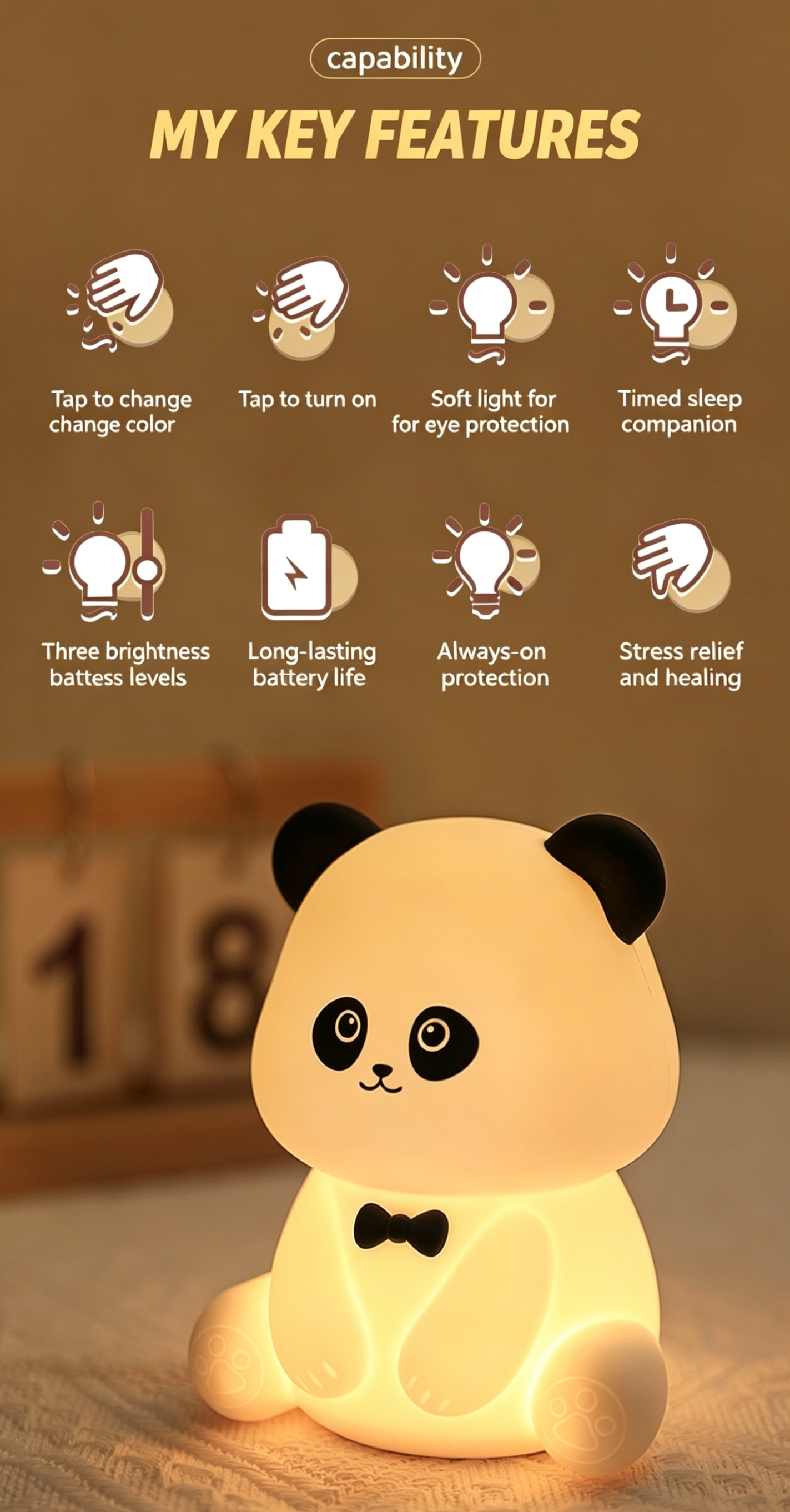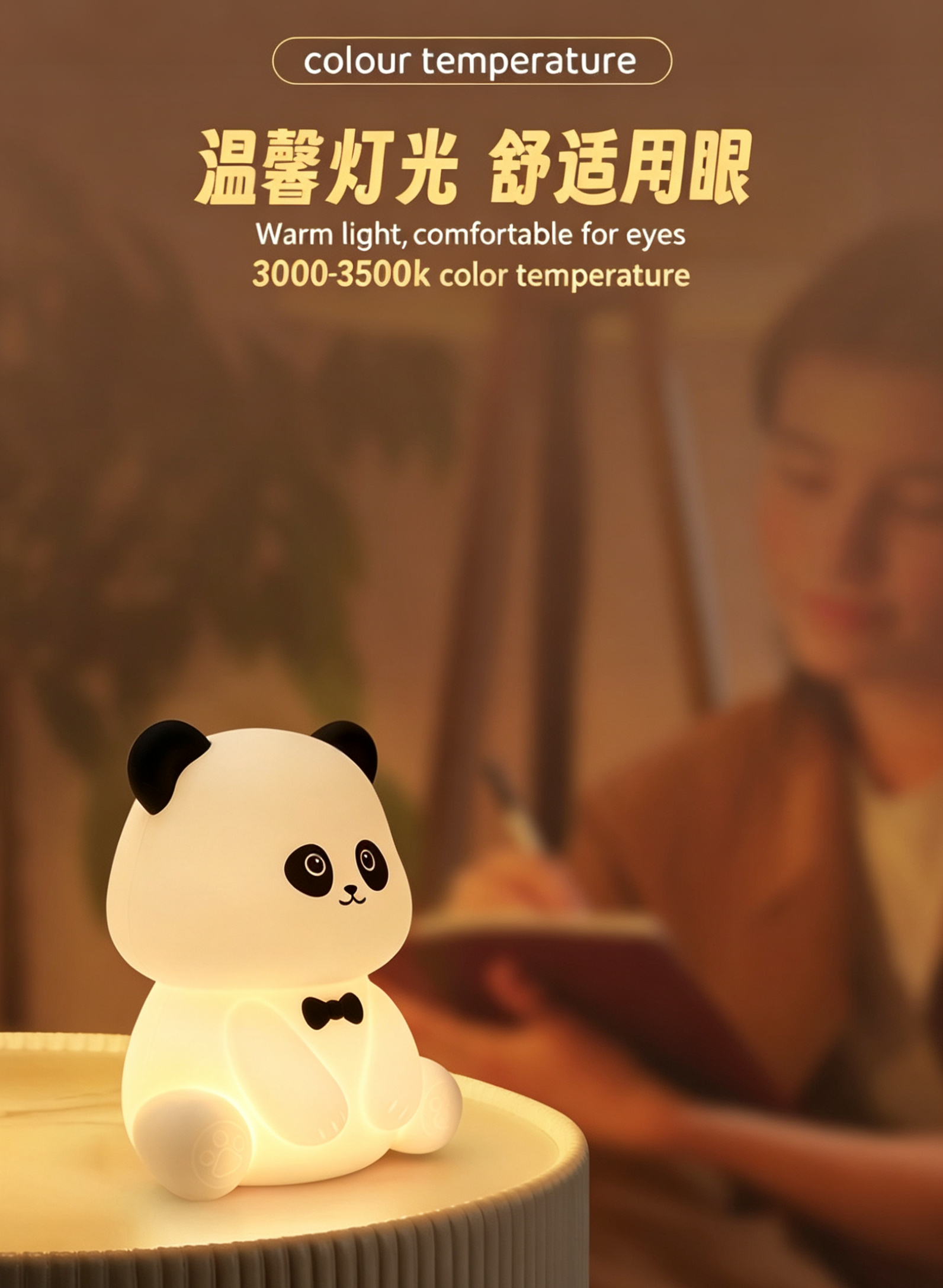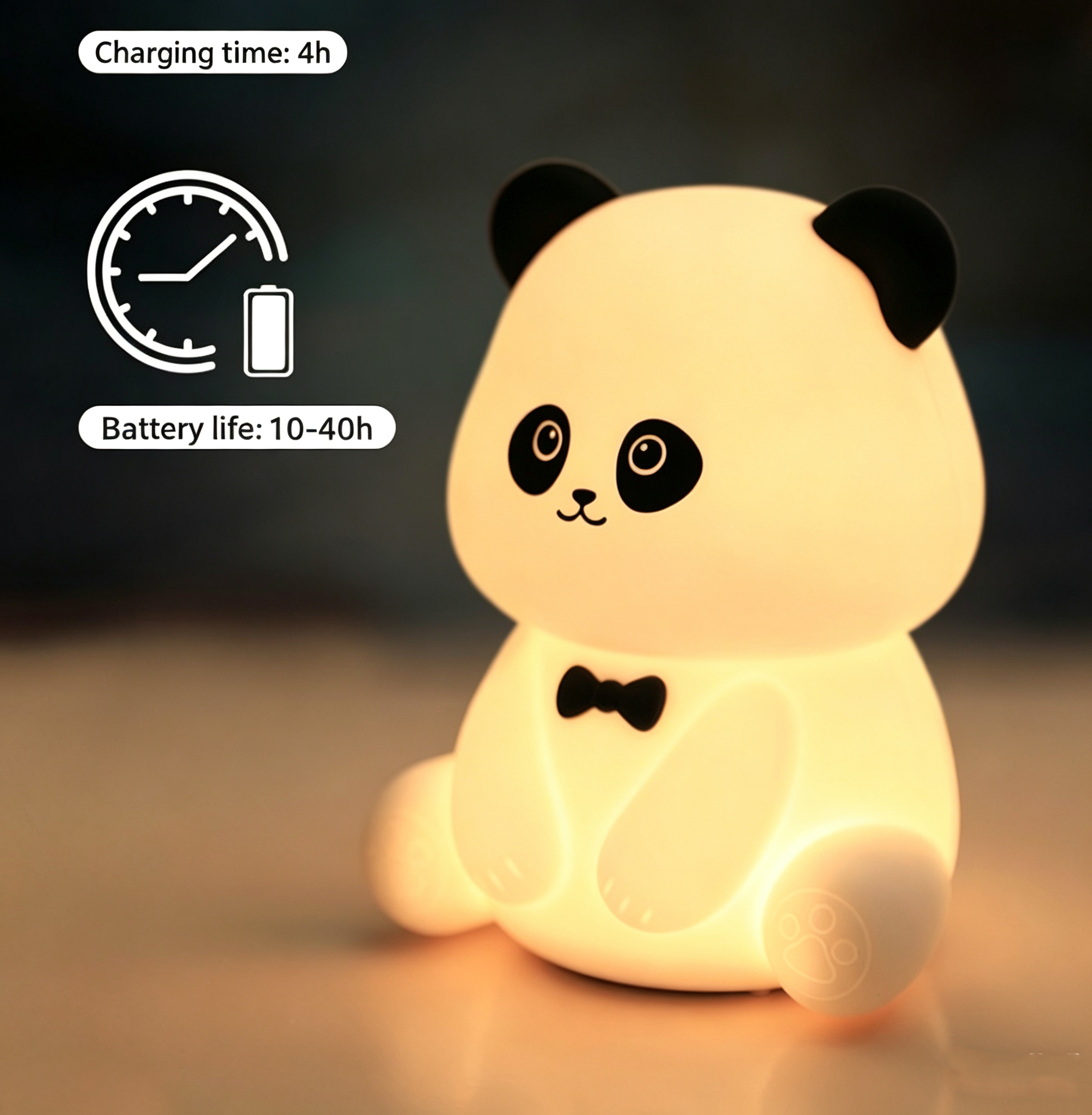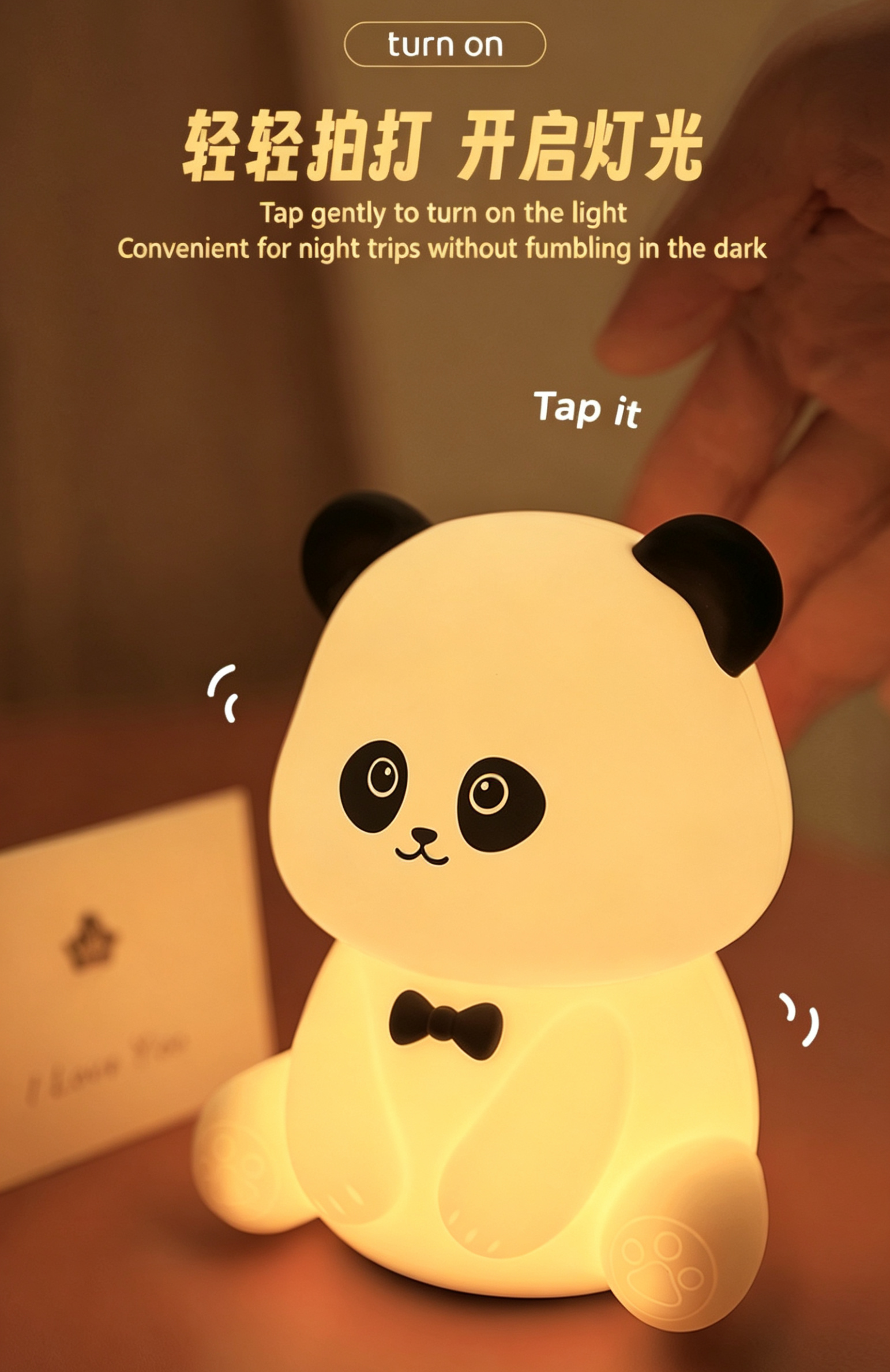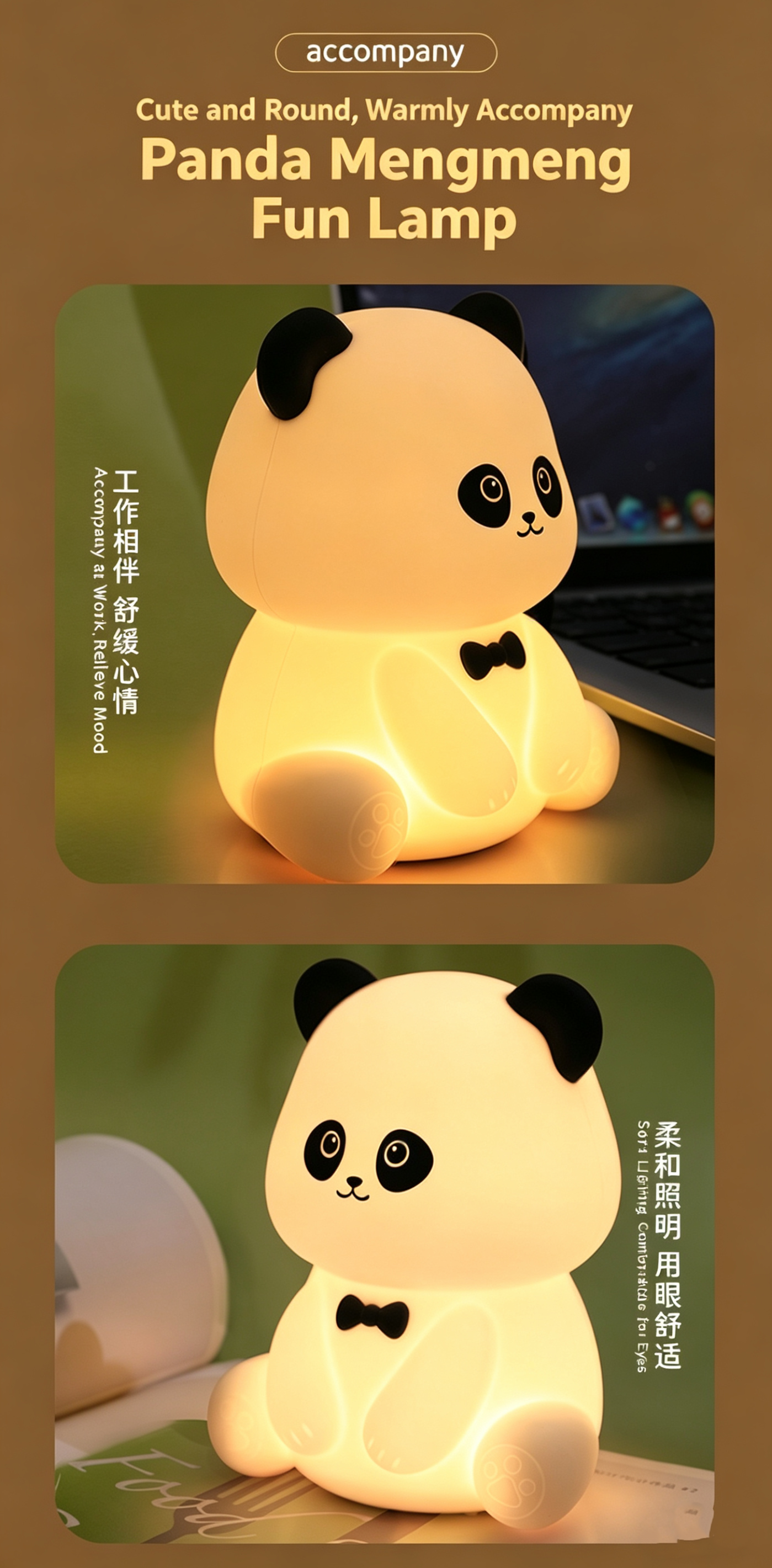 Meet the Panda Mengmeng Night Light — a cute, rechargeable silicone lamp that doubles as a cozy bedroom companion and a fun mood light. Made with soft, safe materials and packed with user-friendly features, it’s perfect for kids, adults, and anyone who loves a touch of whimsy in their space.