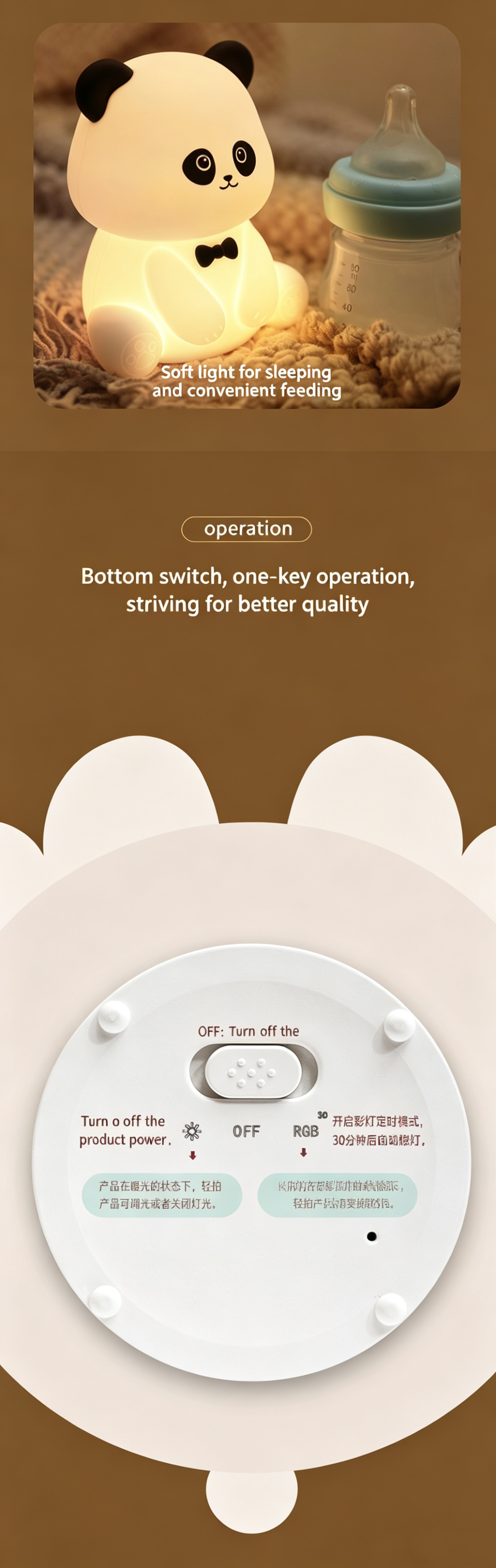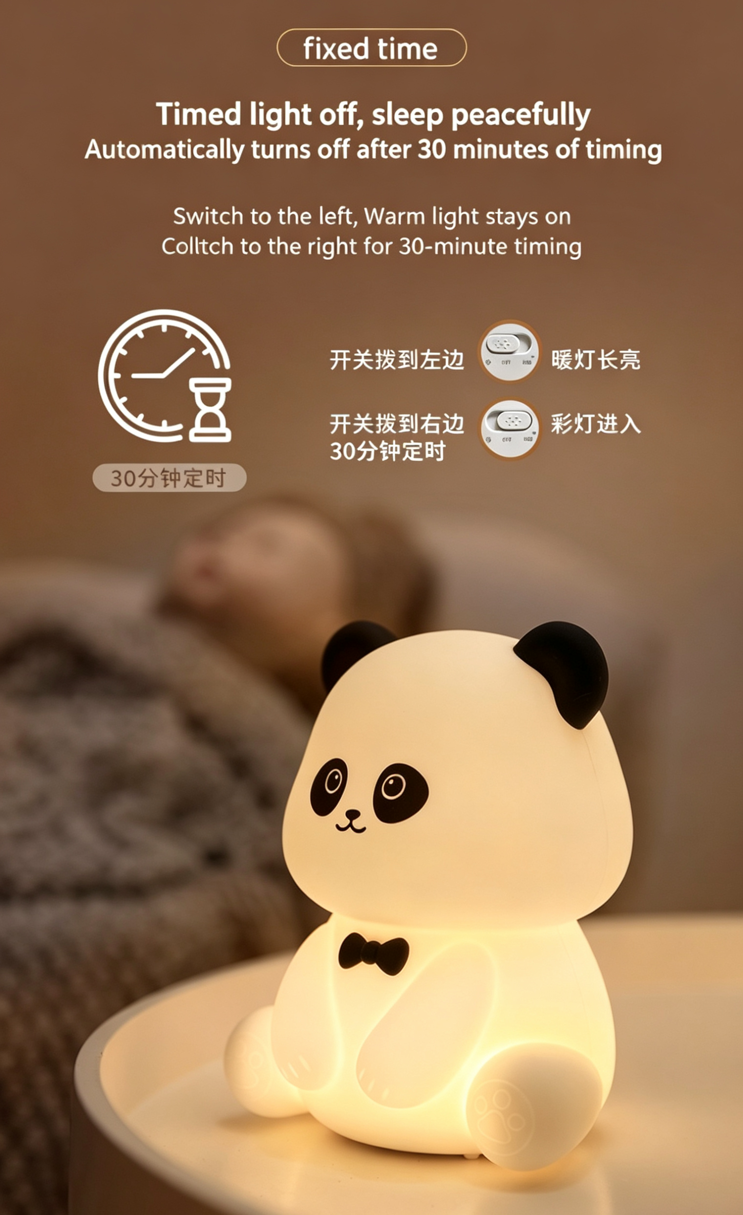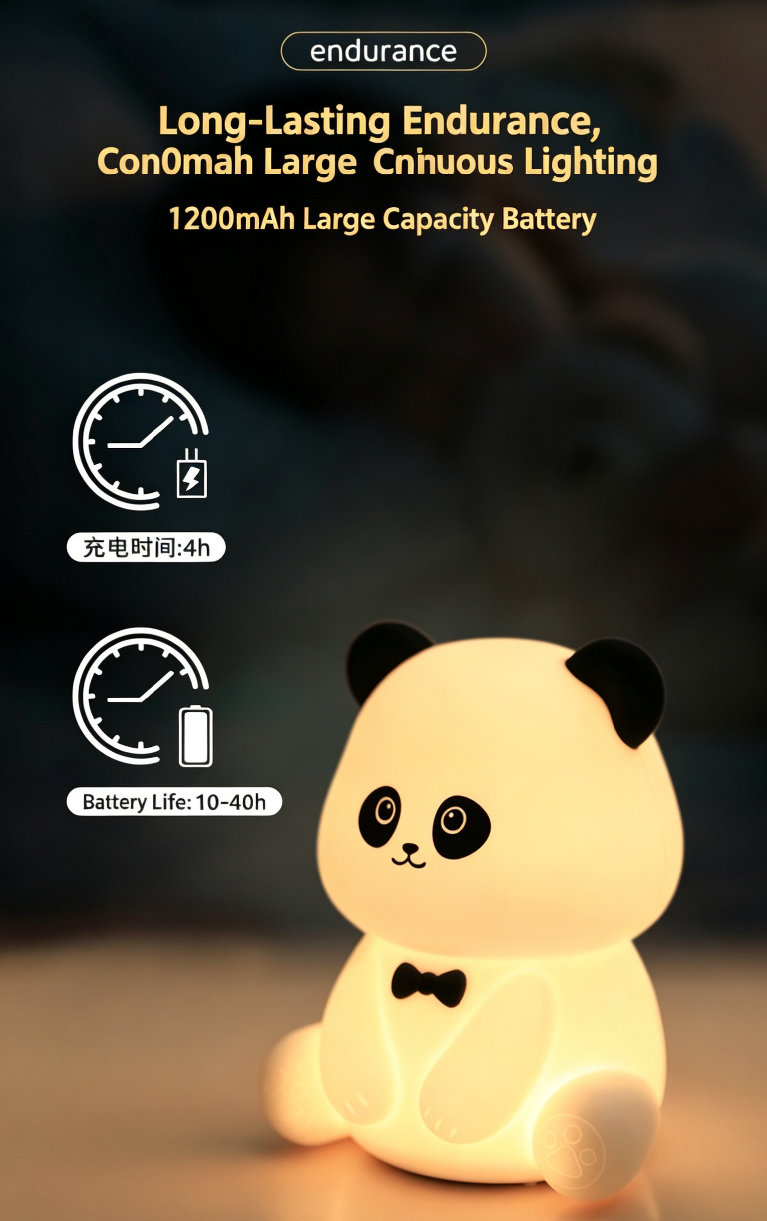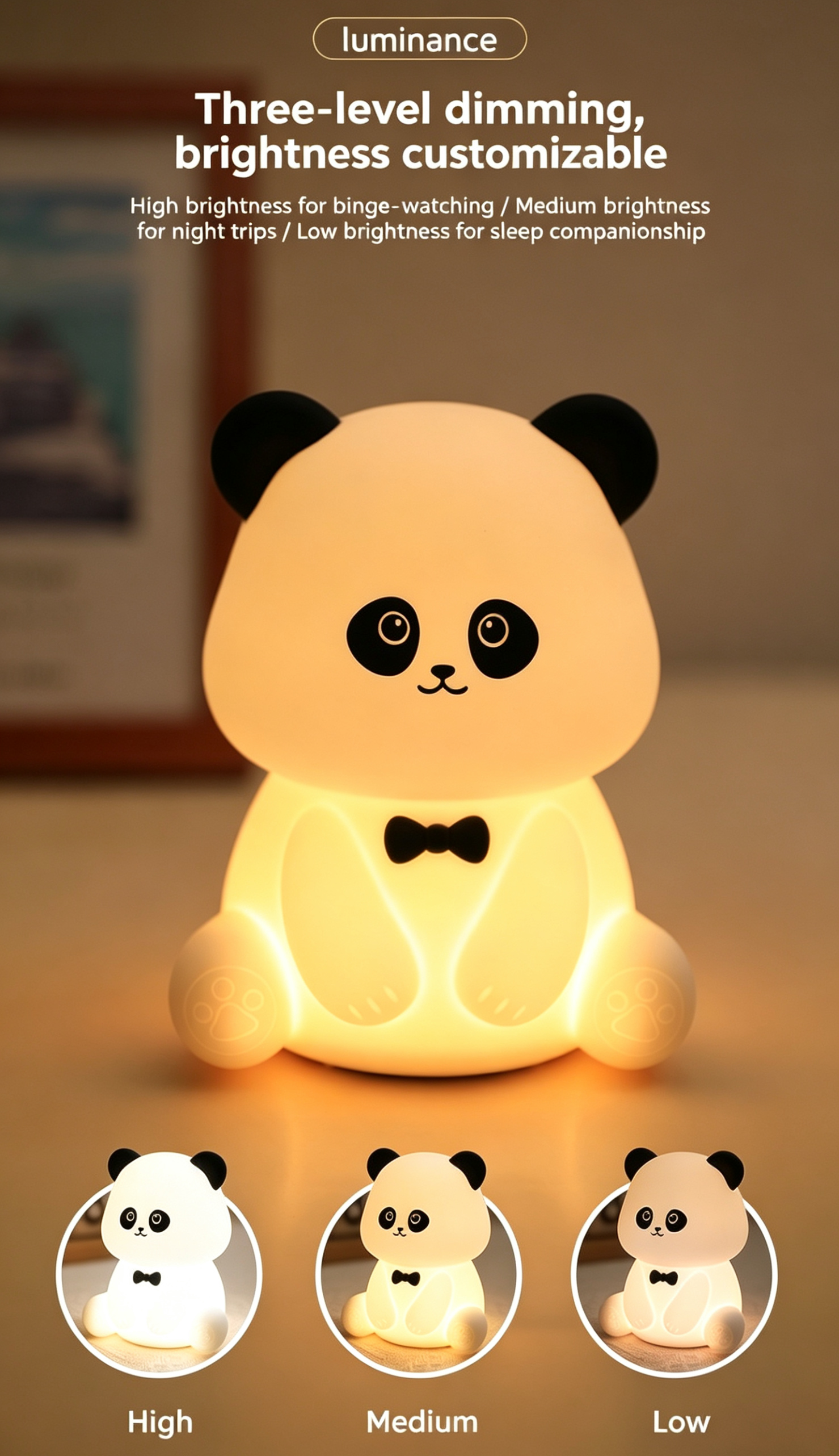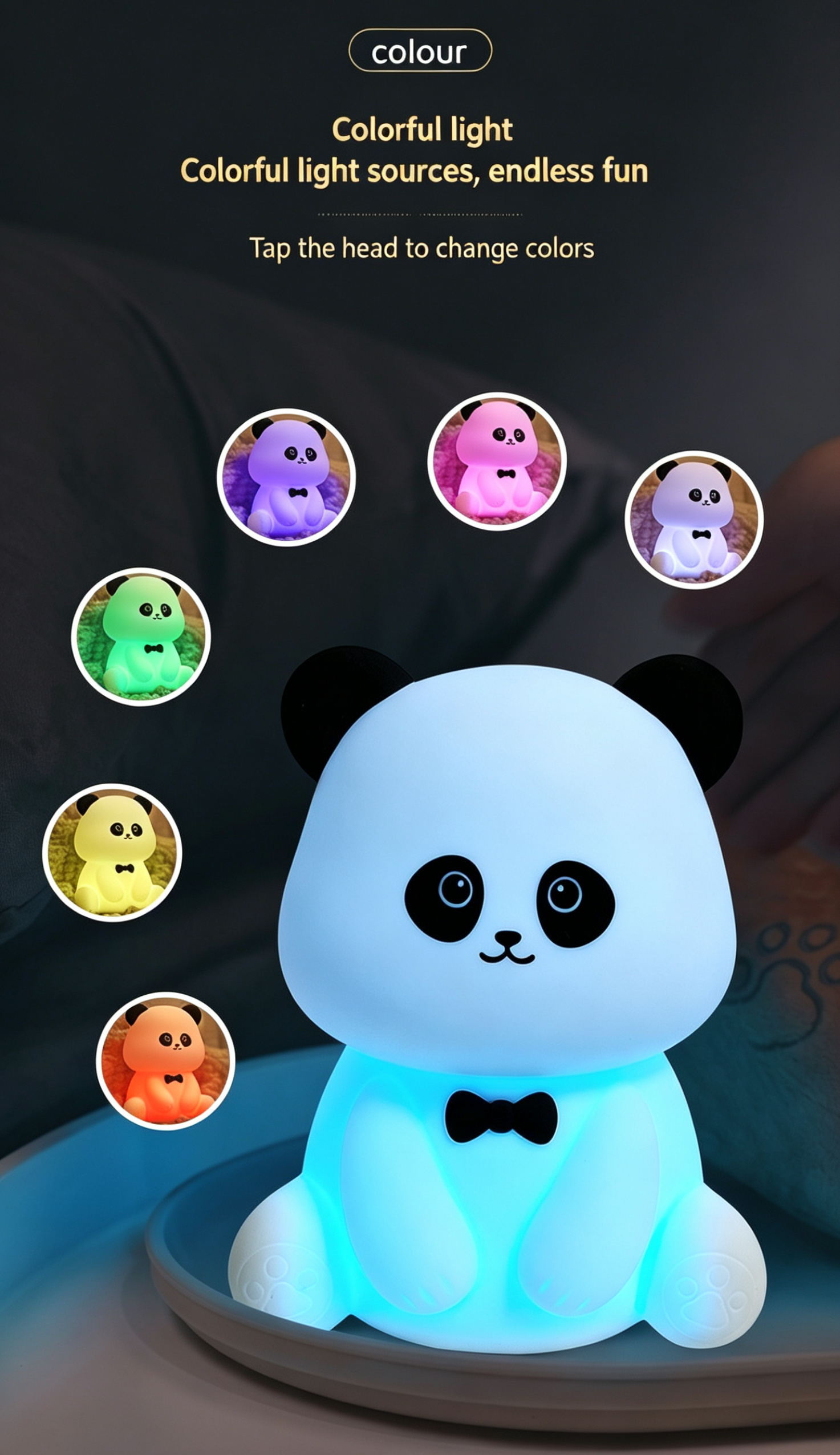 Meet the Panda Mengmeng Night Light — a cute, rechargeable silicone lamp that doubles as a cozy bedroom companion and a fun mood light. Made with soft, safe materials and packed with user-friendly features, it’s perfect for kids, adults, and anyone who loves a touch of whimsy in their space.