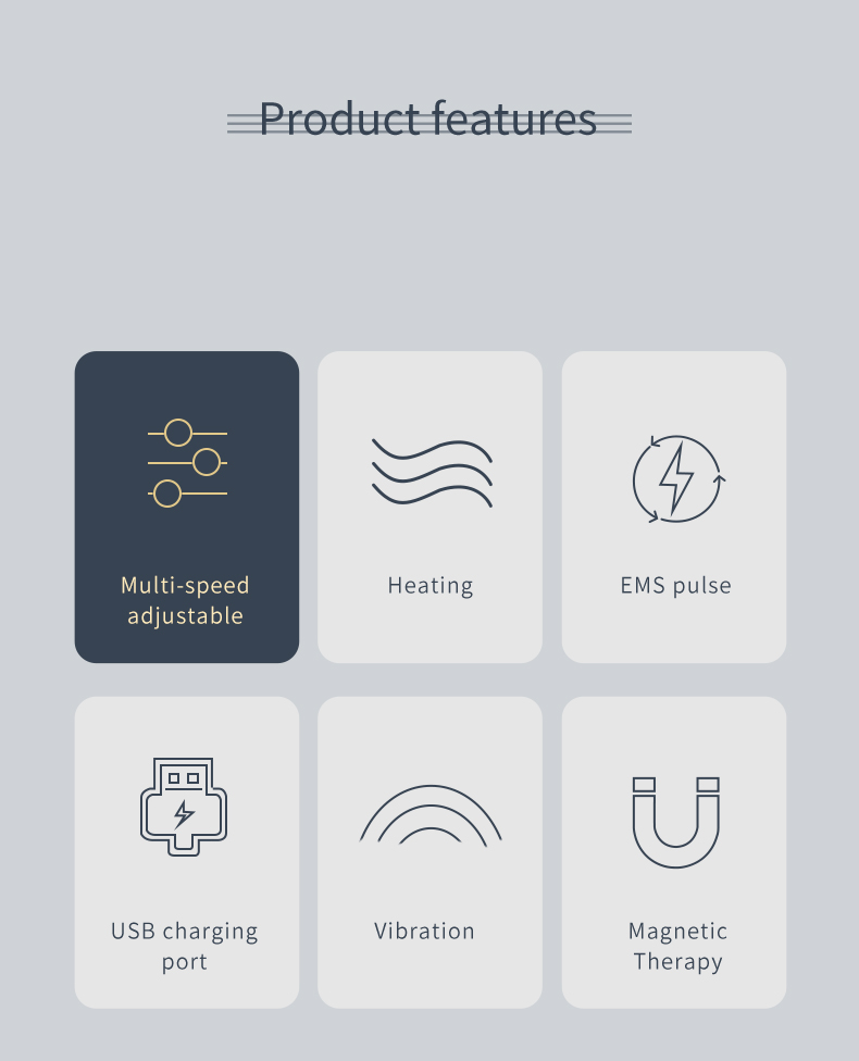 7.Magnetic Therapy + Vibration control together with 4 levels.