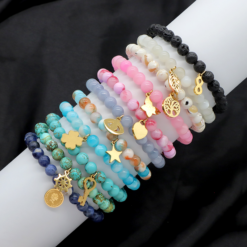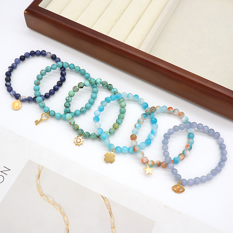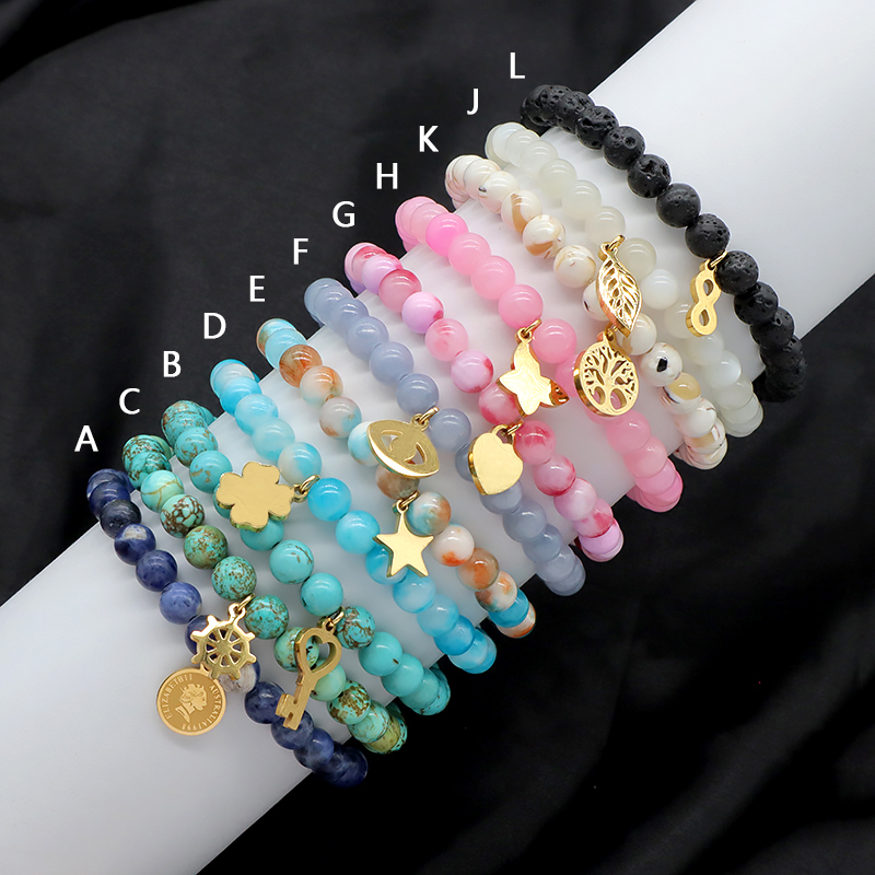 Material : Natural Stone Beads + Stainless Steel Pendant