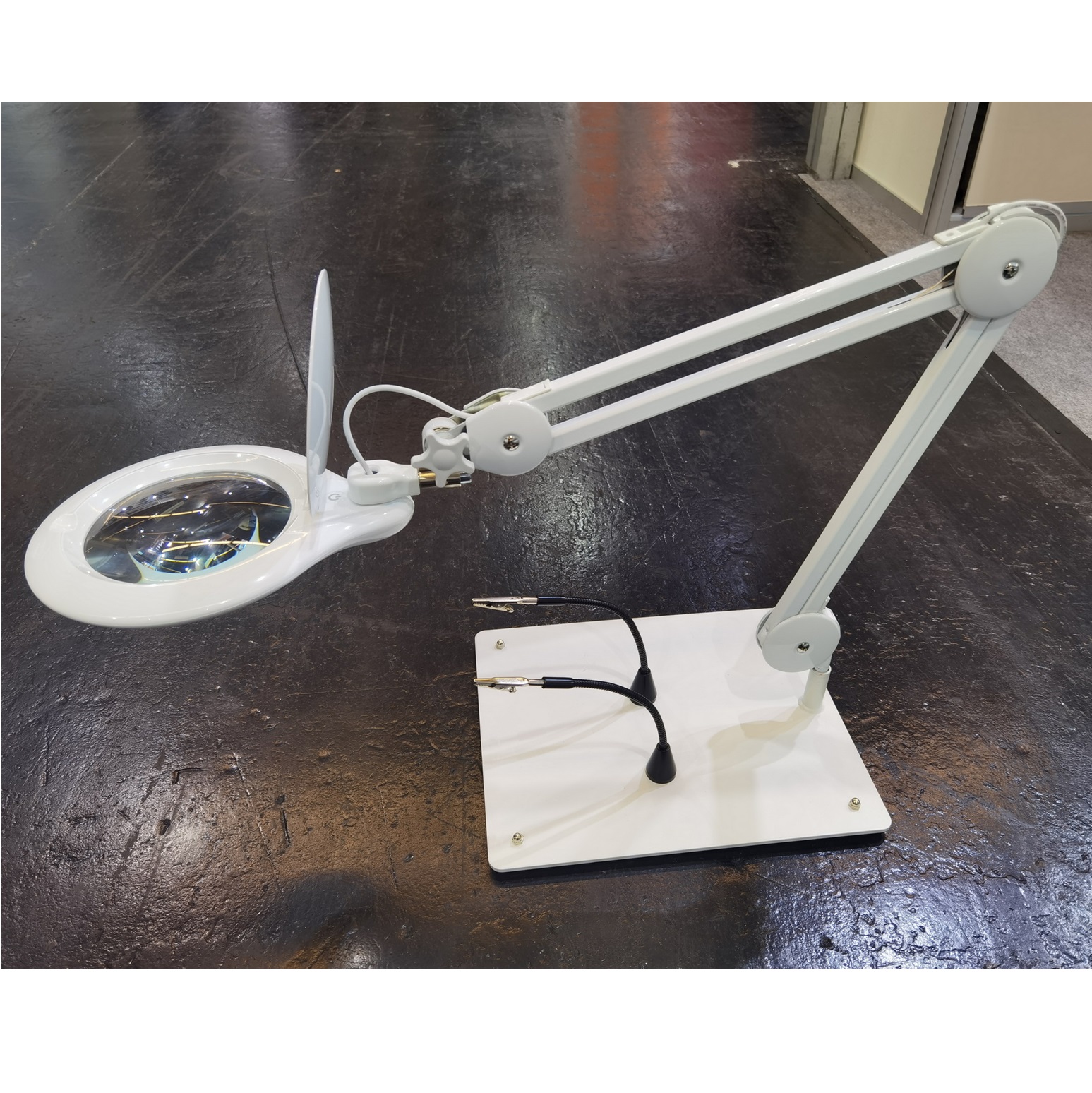 Include 2 magnetic flexible arms with alligator clips