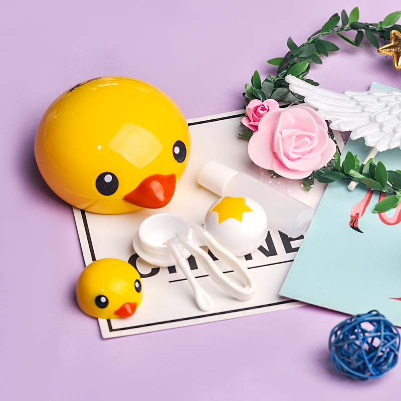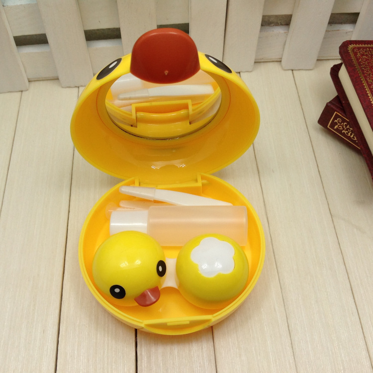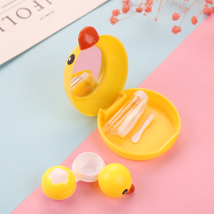 New contact lens case companion box cute cartoon simple compact portable color contact lens double box little yellow duck