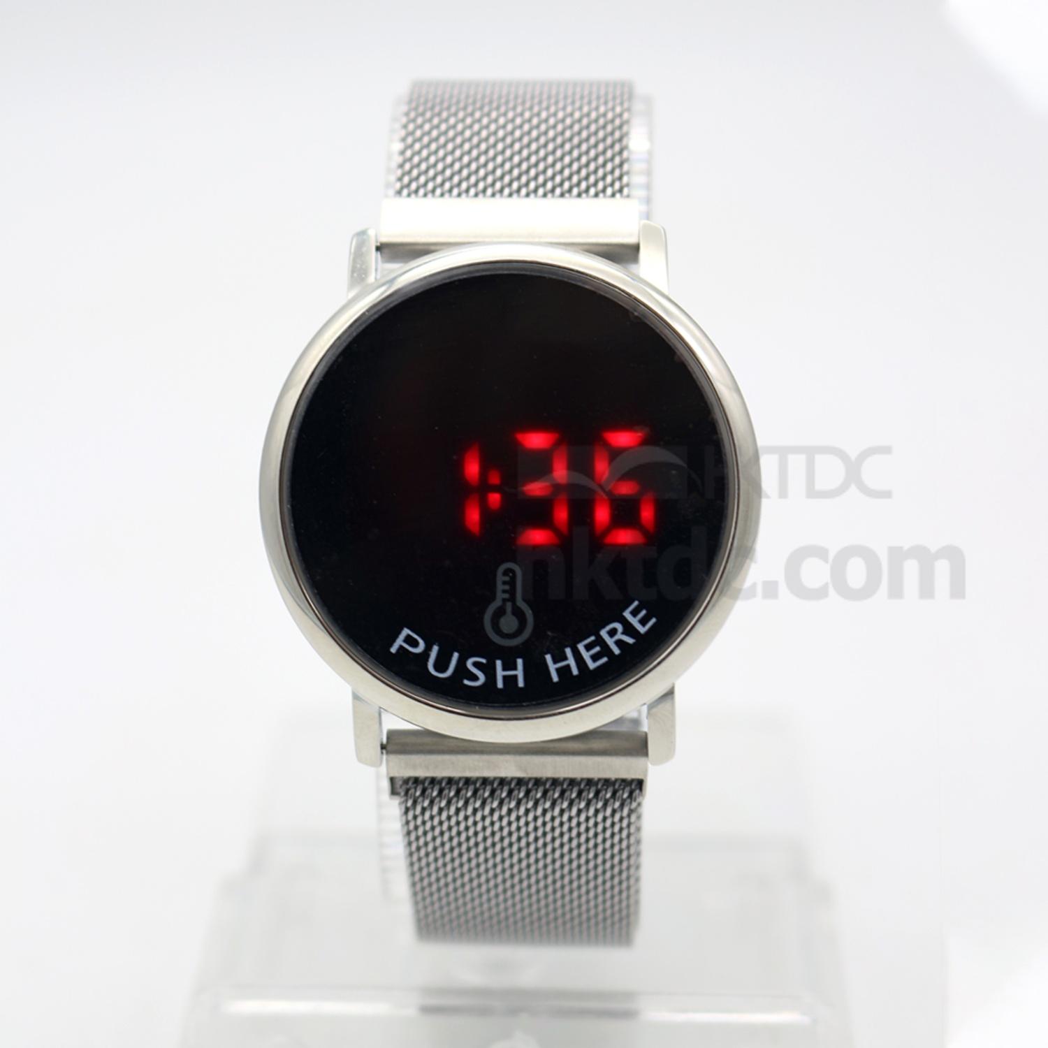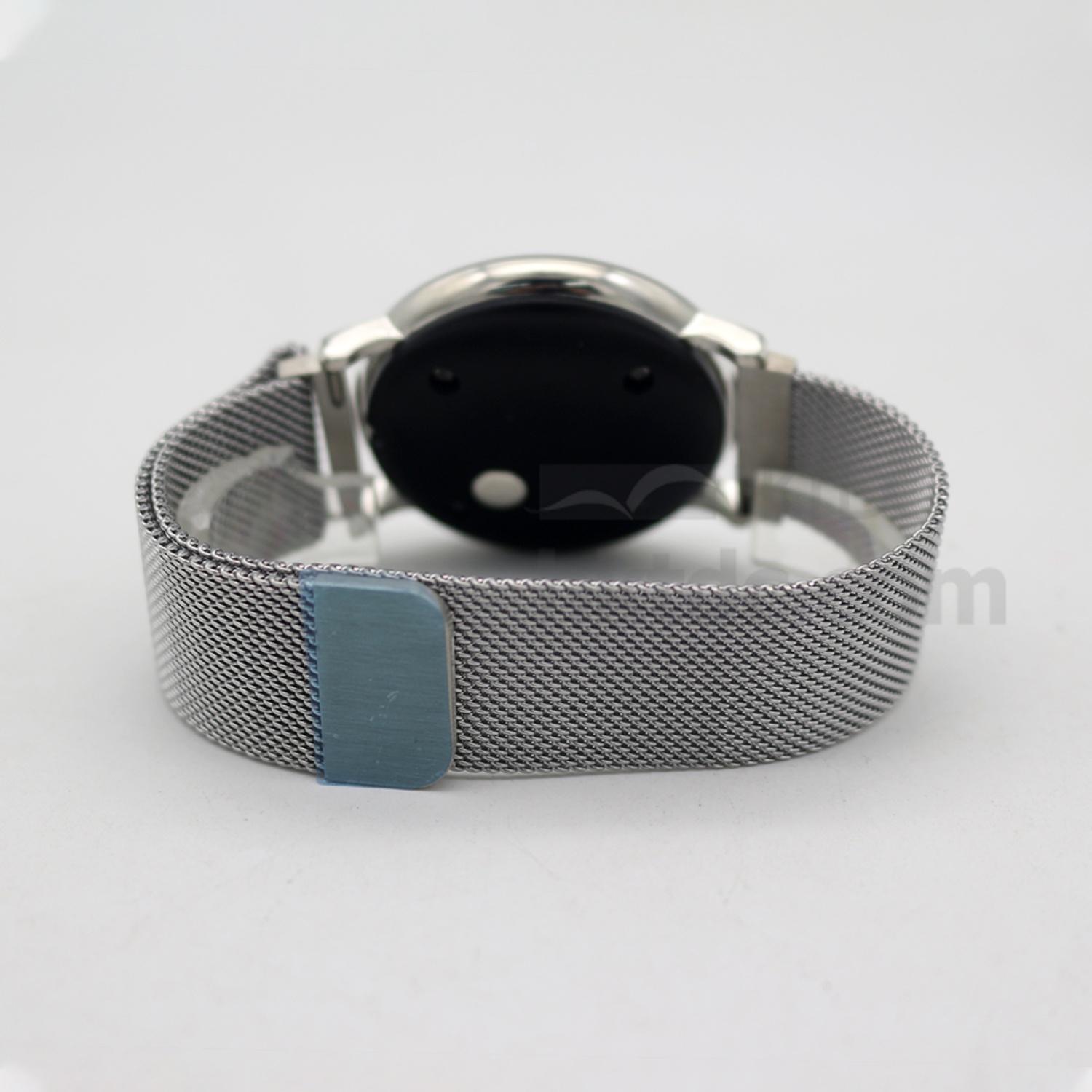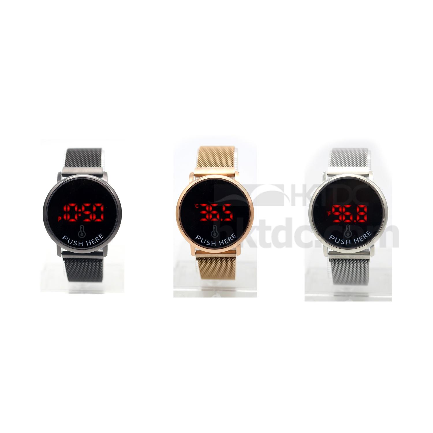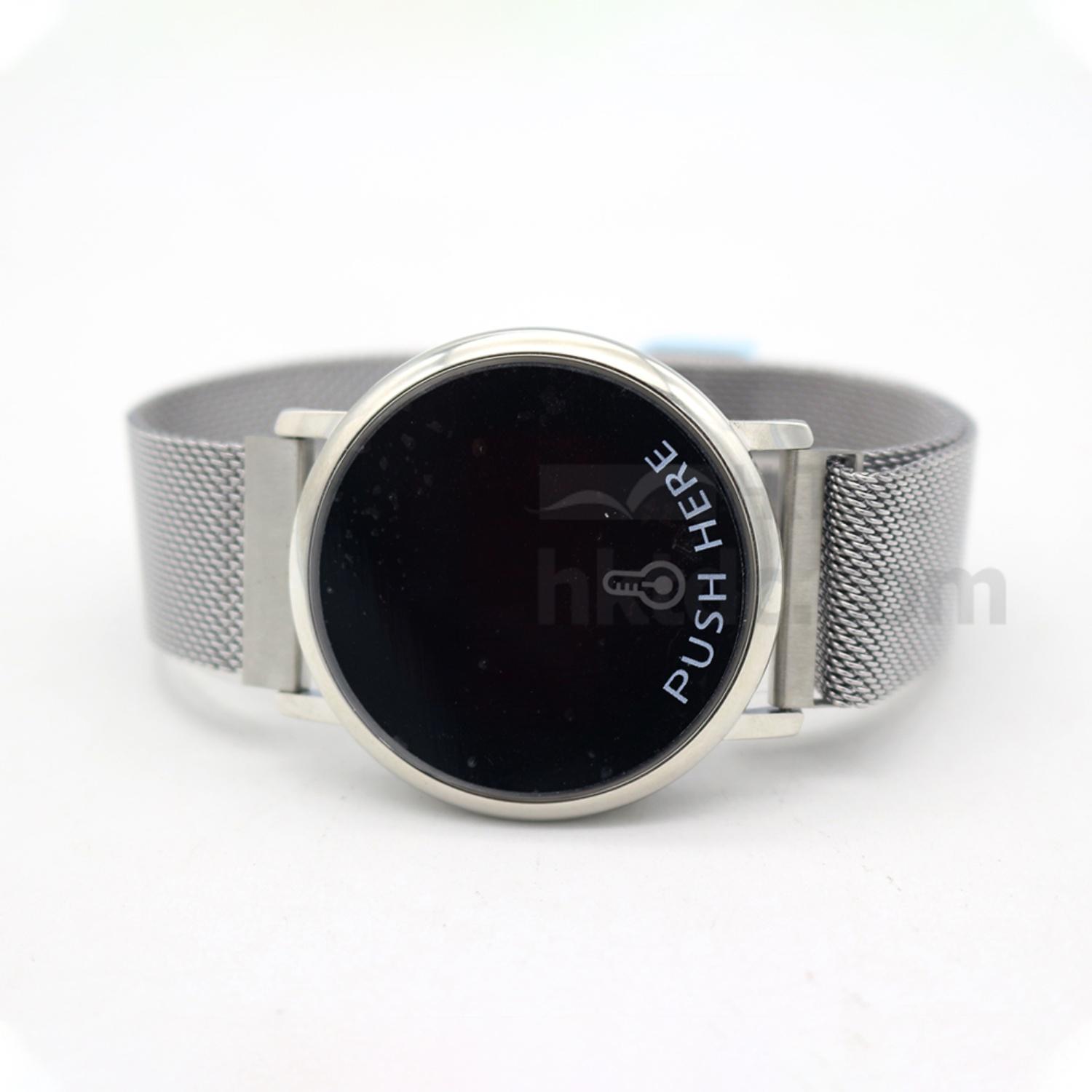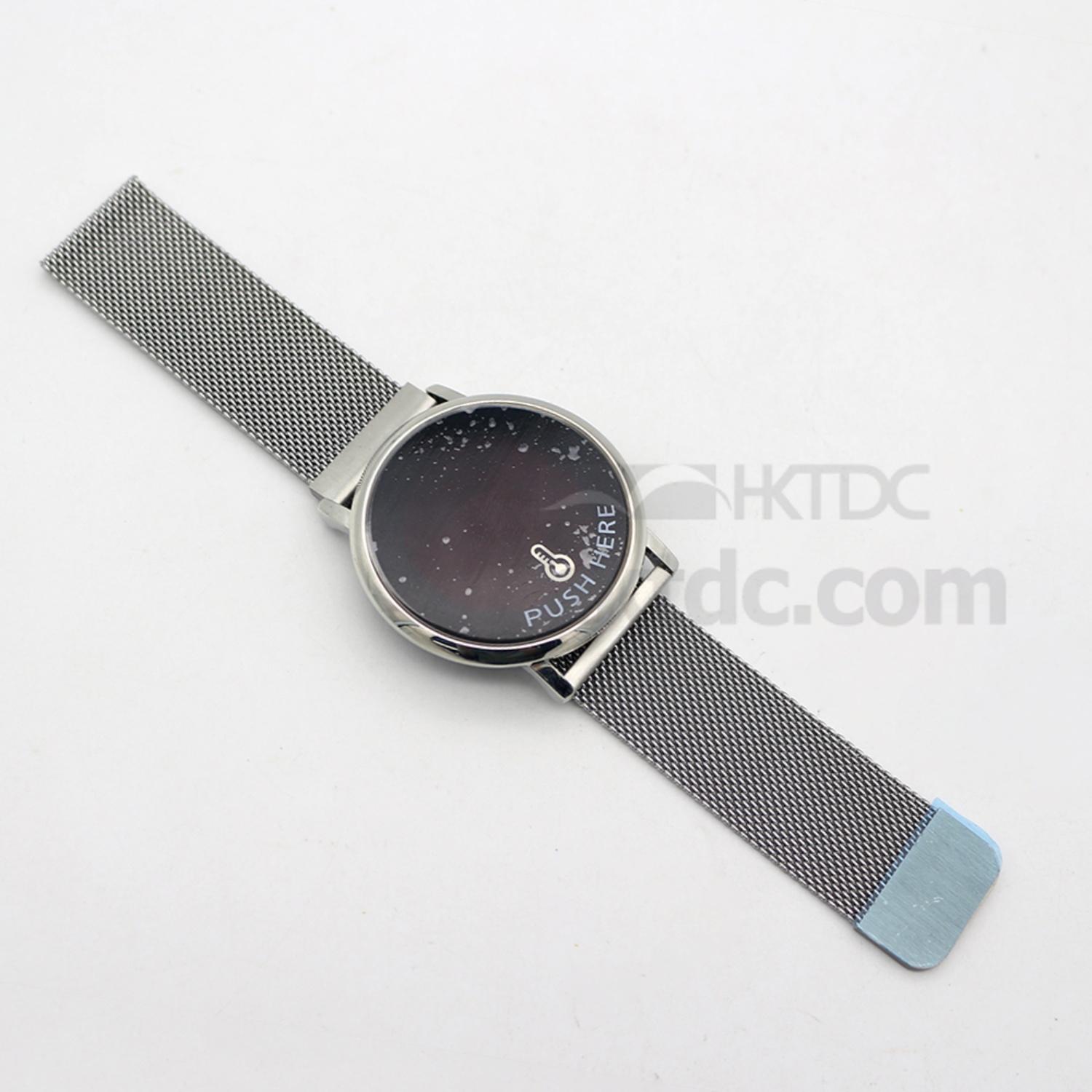 New silver round thermometer watch with stainless steel magnet mesh strap