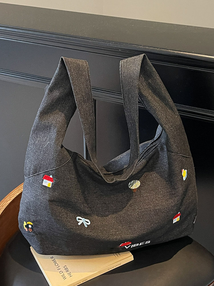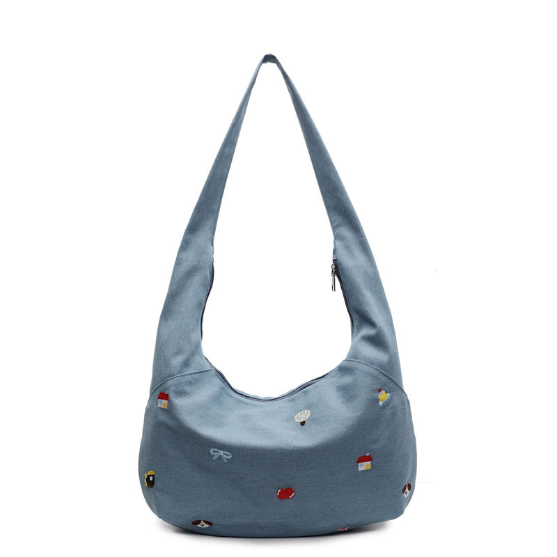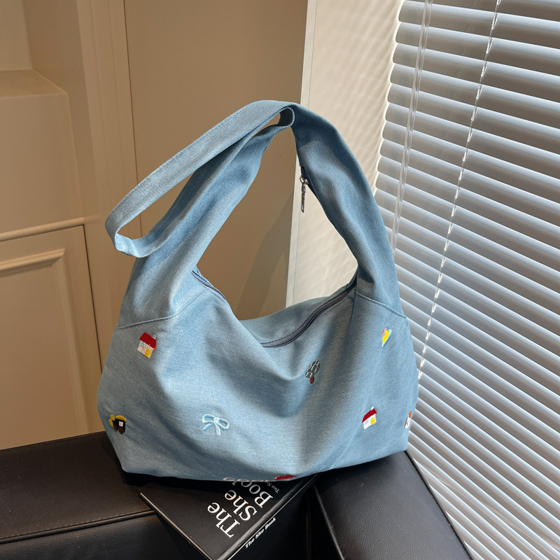 New style casual crossbody denim canvas bag - large capacity for school, literary commuting, laid-back style, single shoulder tote bag