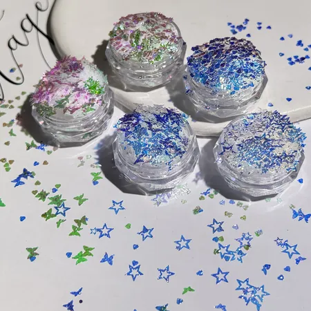 New ultra-thin flashing embossed five-pointed star butterfly small heart-shaped nail art accessory with sequins, glue, and fluffy material toy component