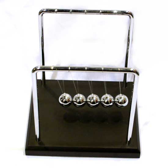 The Newton's cradle features 5 balls aligned in a horizontal line. Just pull the ball on one end and the others will swing at the same speed like a pendulum. This Newton's cradle will keep you entertained throughout the day.
