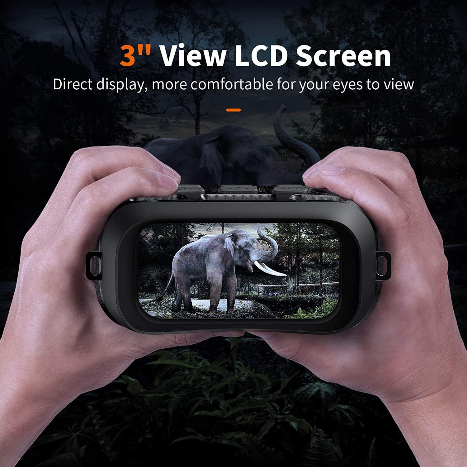 3'' Large HD Display: Night vision goggles with a 3" screen, allowing you to view crystal-clear photos and videos. 25mm objective aperture and 5x digital zoom of view offer you more full field. Perfect for outdoor activities, security and surveilla, camping, watching wildlife and scenery.