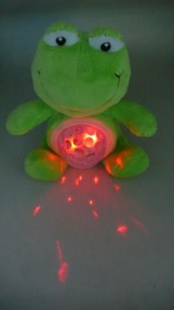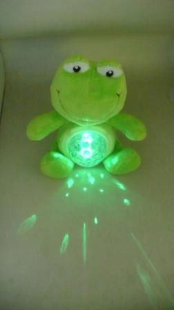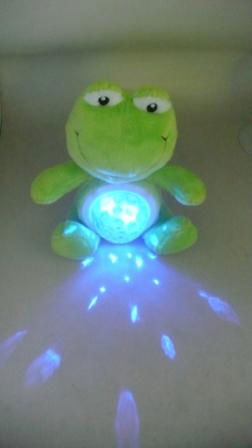 Photographed is a soft toy with an adorable frog design. The soft body is cuddly and comfortable to touch. This little frog can also function as a nightlight accompanying your little one to sweet dreams.