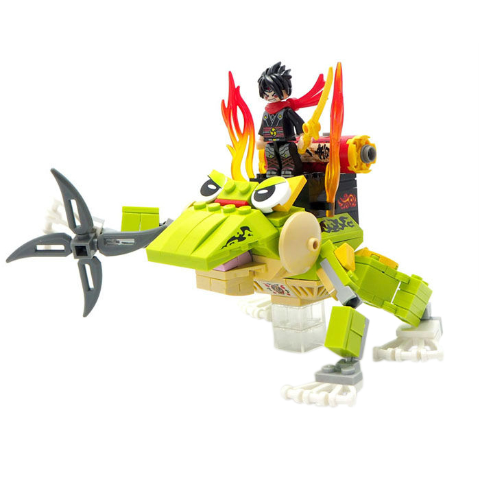 Featured here is a toy brick play set including a ninja figure and a vehicle in frog design. The frog vehicle has movable joints and can be placed into variety of poses. It has a fun toy for kids to build and is perfect for creative adventures.