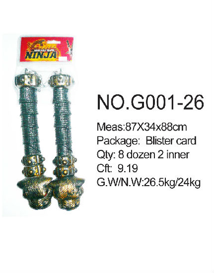 Showcased is toy nunchakus flaunting shiny handles. Both ends are exquisitely designed with dainty craftsmanship to add attractiveness. Give your kids this real-like nunchakus to present their energetic genes.