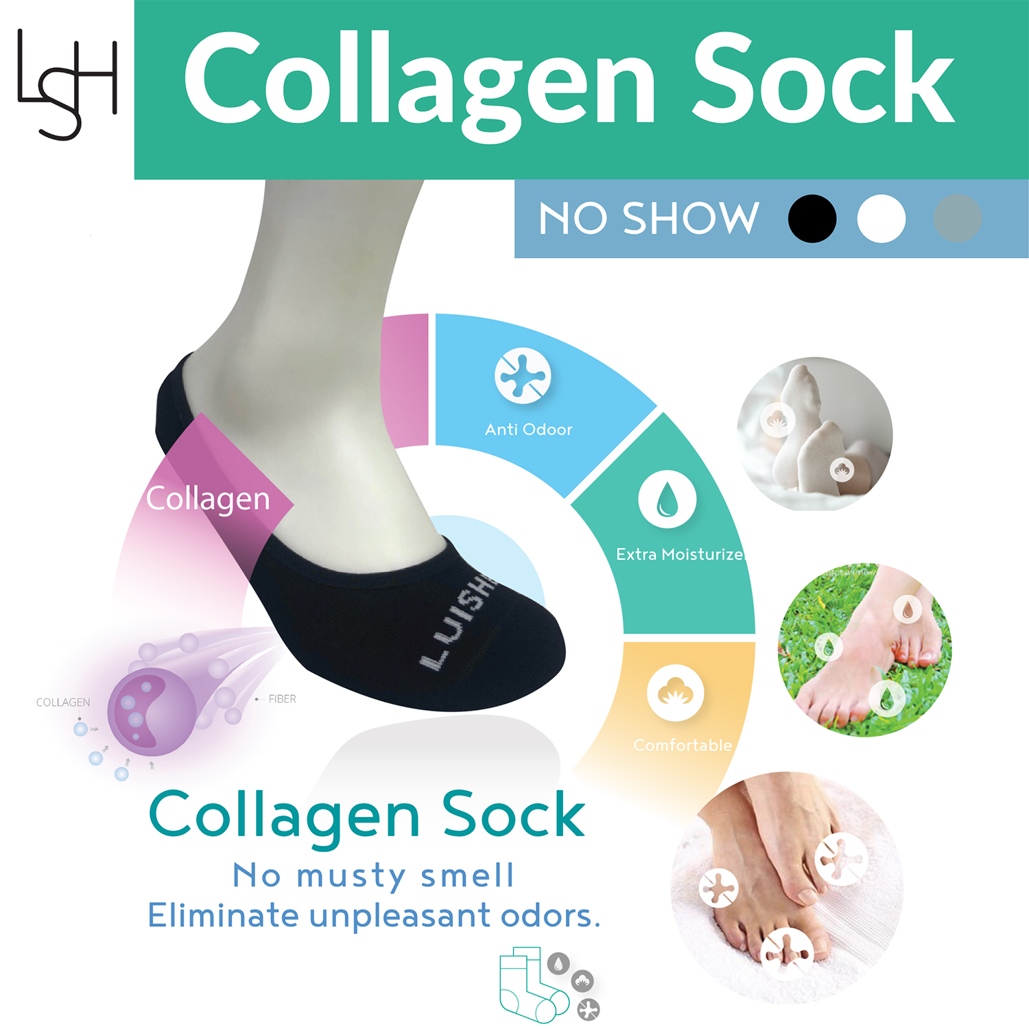 This collagen sock comes in a no show style and can eliminate up to 90% unpleasant foot odor. It can maintain moisture 13 times better than a cotton sock and can help keep your feet smooth and prevent cracked heels. The no show collagen sock can be washed countless times without losing functions and can provide a breathable and comfortable fit.