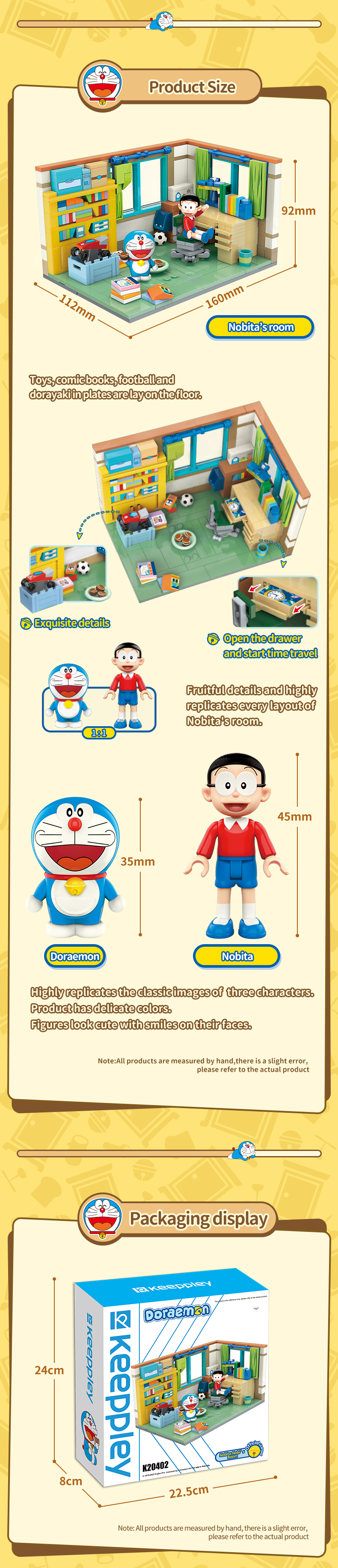Highly restore Nobita's room, with lots of printing details, such as comic books, the Dorayaki in the plate, toys, football, bookcase, desk lamp, etc.