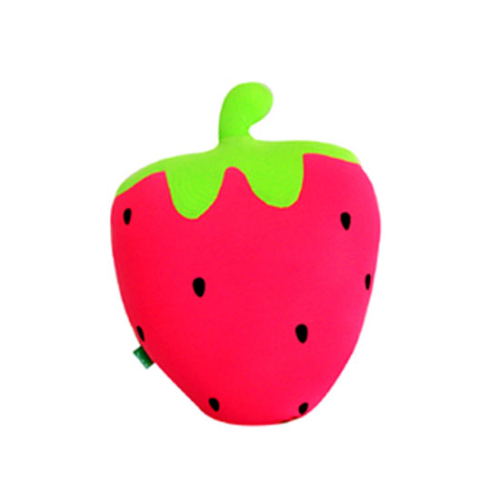 This is a cushion designed in a vivid and lifelike strawberry shape. It comes in bright red and green with black dots on the body for a more realistic look. There are different designs available for you to choose from.