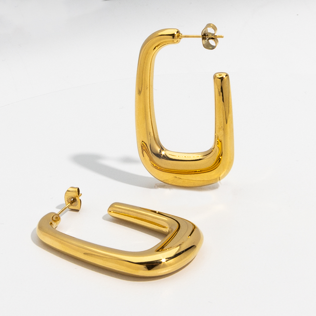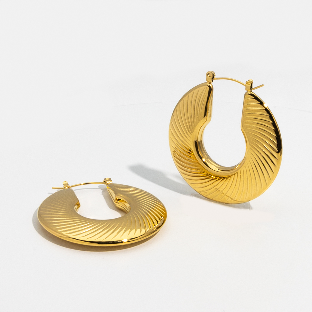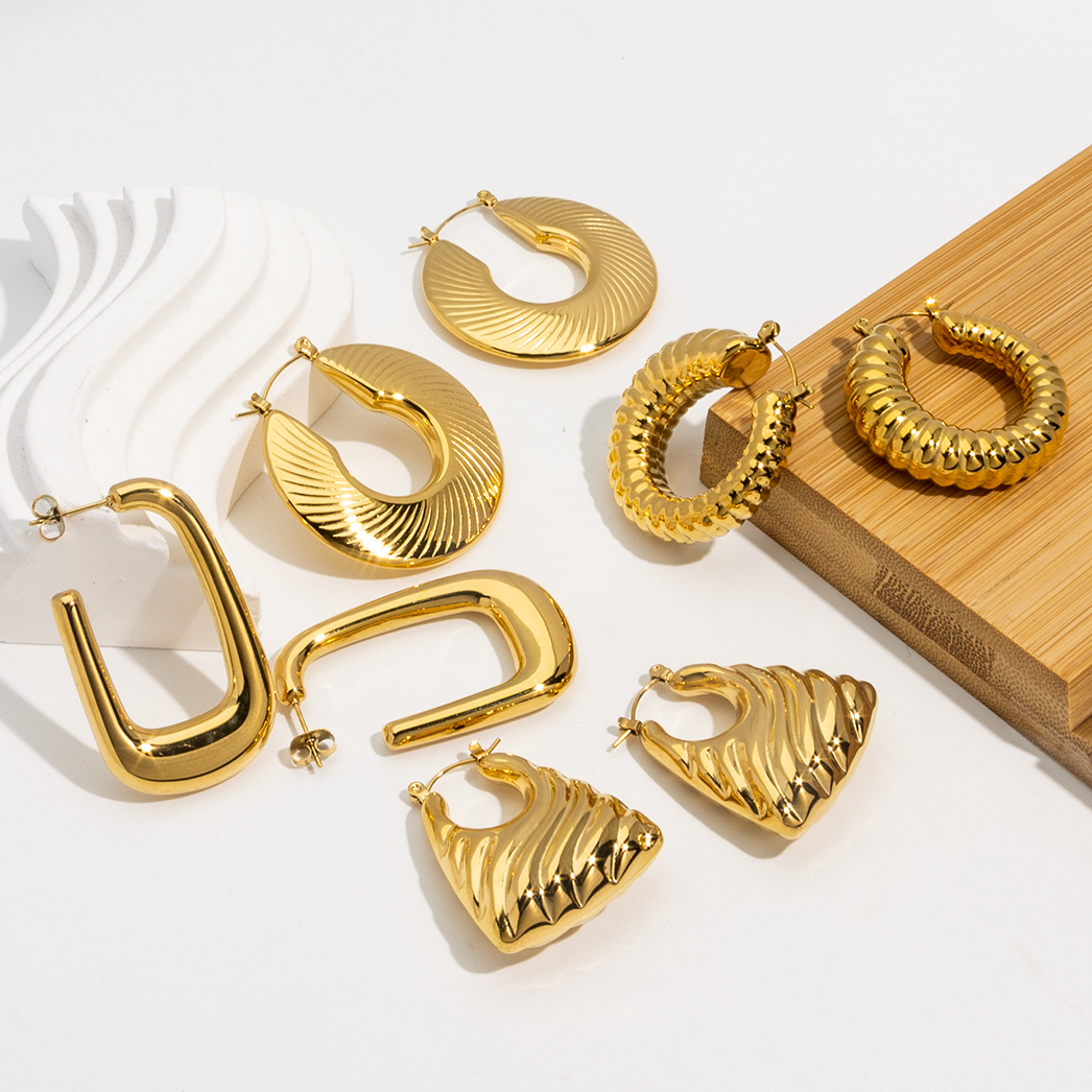Non Tarnish Gold Plated Texture Exquisite Patterned Hollow Handbag Hoop Earrings Stainless Steel Big U Shape Geometric Earring