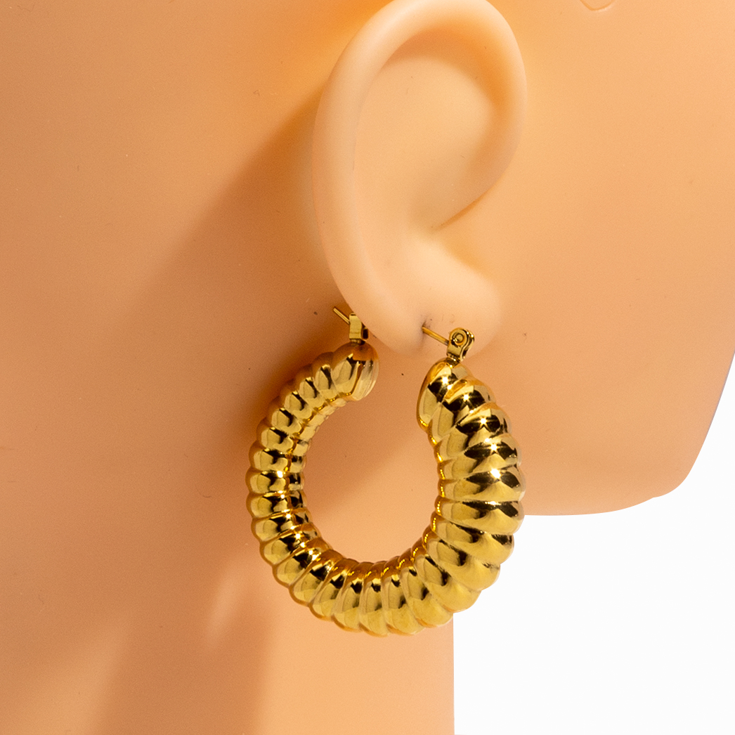 Non Tarnish Gold Plated Texture Exquisite Patterned Hollow Handbag Hoop Earrings