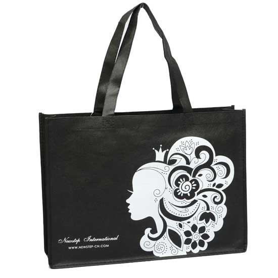 This exquisite non-woven shopping bag is finely printed with a lady's silhouette. The durable non-woven shopping bag can stand daily tear and wear. It is an eco-friendly packaging material for cosmetics, garments, shoes, etc.
